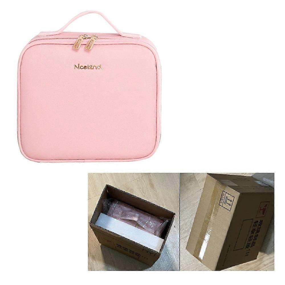 BOFEER PU Leather Cosmetic Bag Box Zipper with Mirror LED Light (Large packaging Pink)