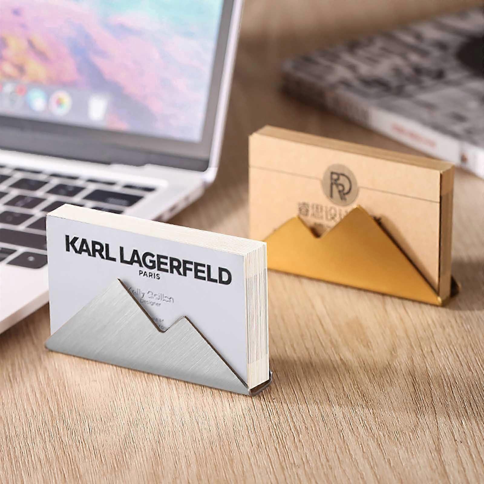 Begine Business Card Holder B, Golden Stainless Steel Creative Desk Organizer, Compatible with Office & Party Supplies Decor