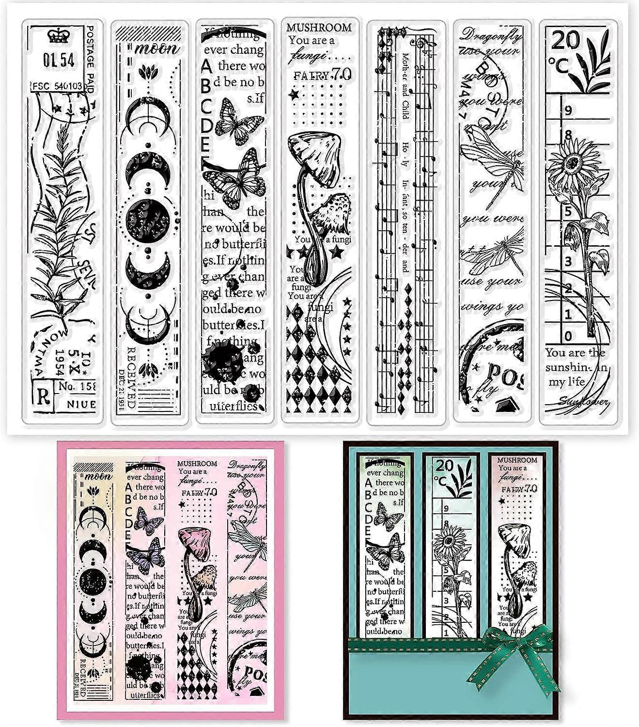 7 Themes Vintage Clear Stamp Flower Butterfly Dragonfly Phase Sunflower Mushroom Musical Note Silicone Transparent Seal Stamp