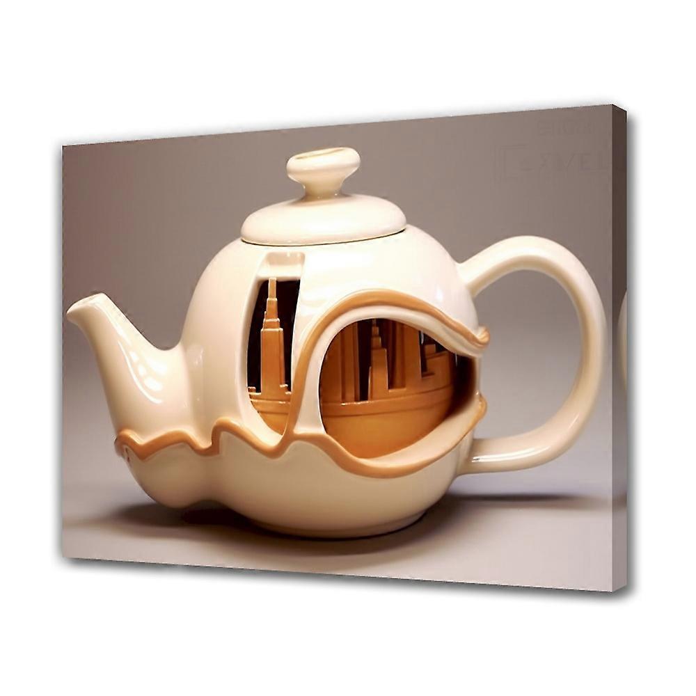 Architectural White Teapot Canvas Poster, 8x12 inch - Frame-style Bedroom & Office Decor, Landscape Art Print Gift