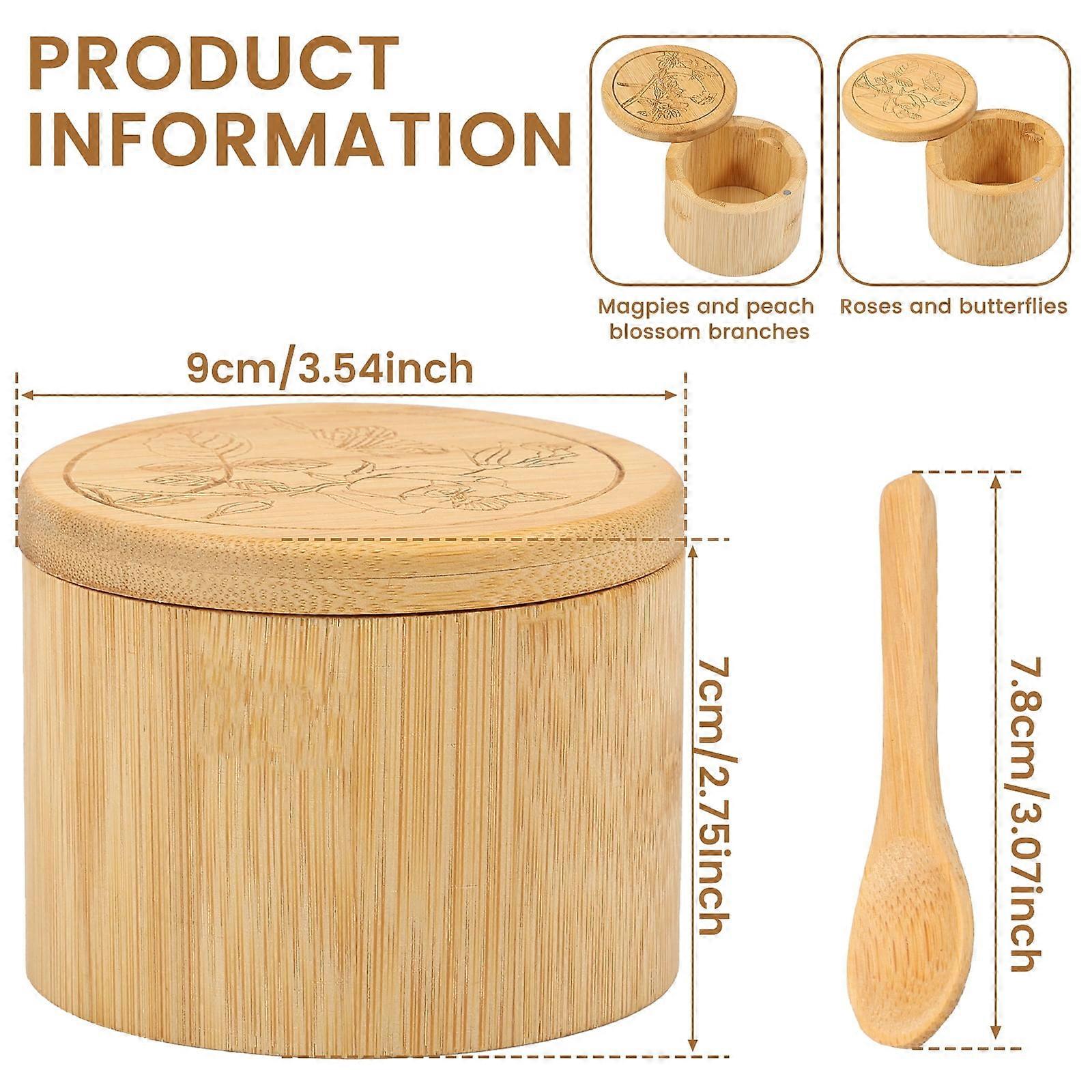 Bamboo Salt Cellar Set with Magnetic Lid, 5 oz Round Spice Container with Spoon, Portable Salt & Pepper Bowls for Kitchen Cooking