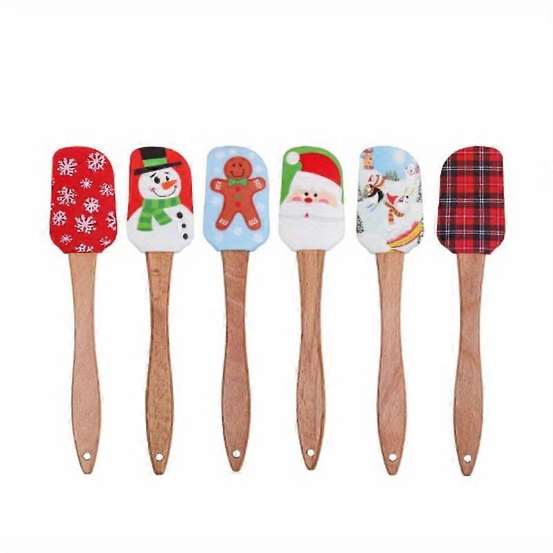 Festive Christmas Silicone Spatula Set with Wooden Handles - Ideal for Baking, Cooking, Cake Decoration & Xmas Tree Ornaments