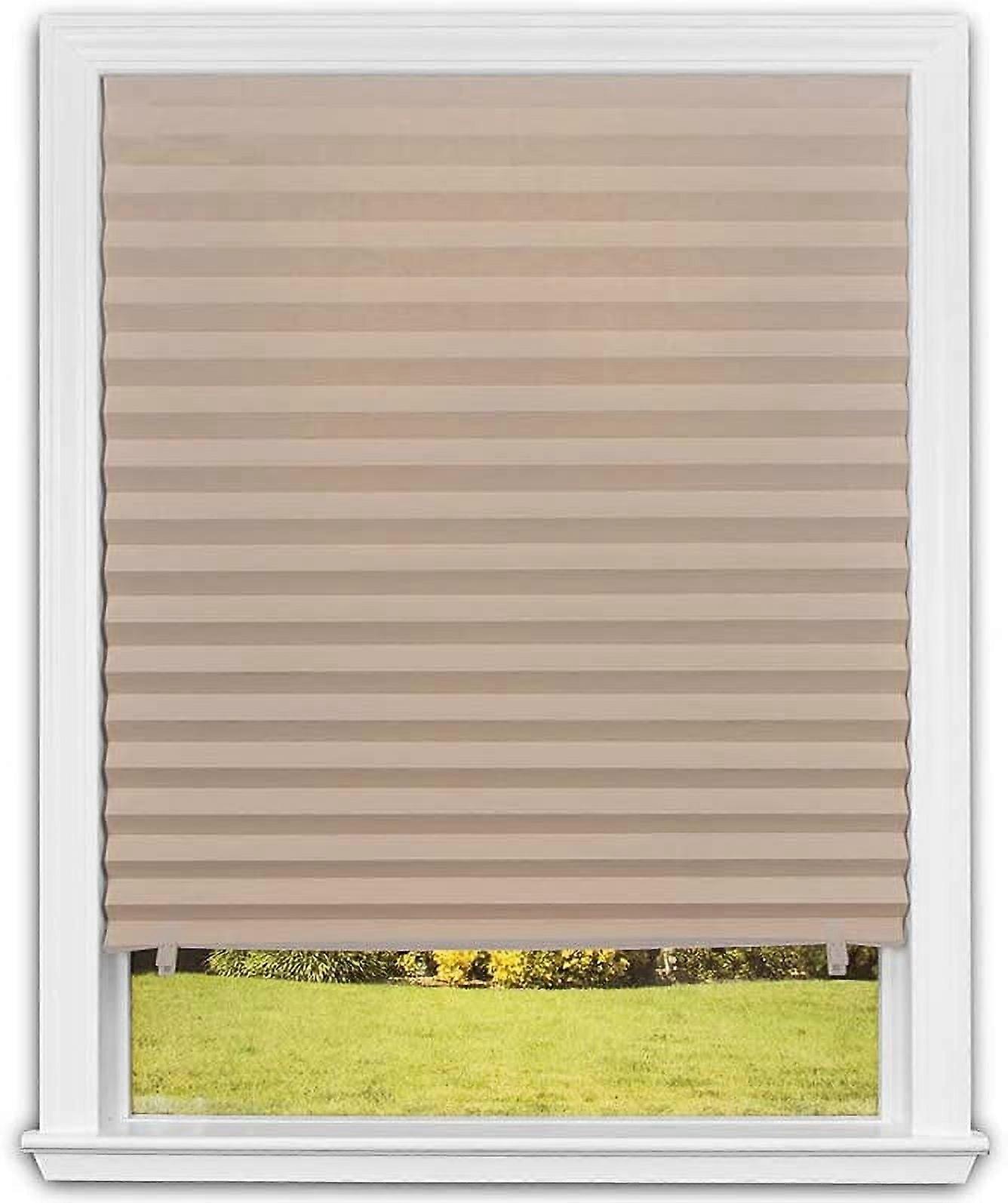Temporary Cordless Blinds Light Filtering Fabric Pleated Shades for Windows, Brown 90*150CM/35*60 Inch
