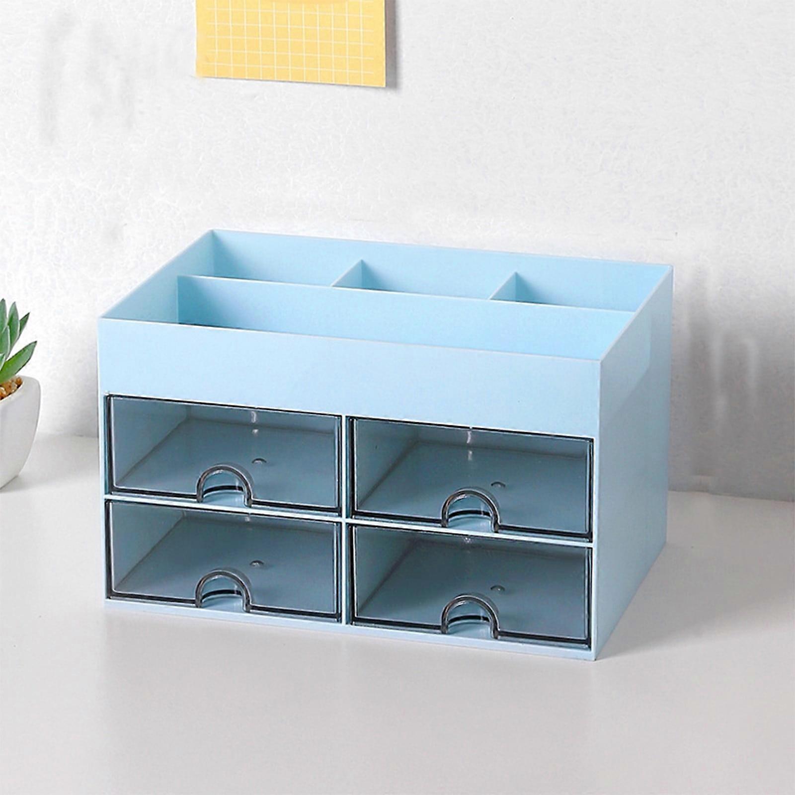 Qdahuk Makeup Organizer for Vanity, Large Capacity with Drawers for Cosmetics, Lipsticks, Jewelry, Nail Care, Blue