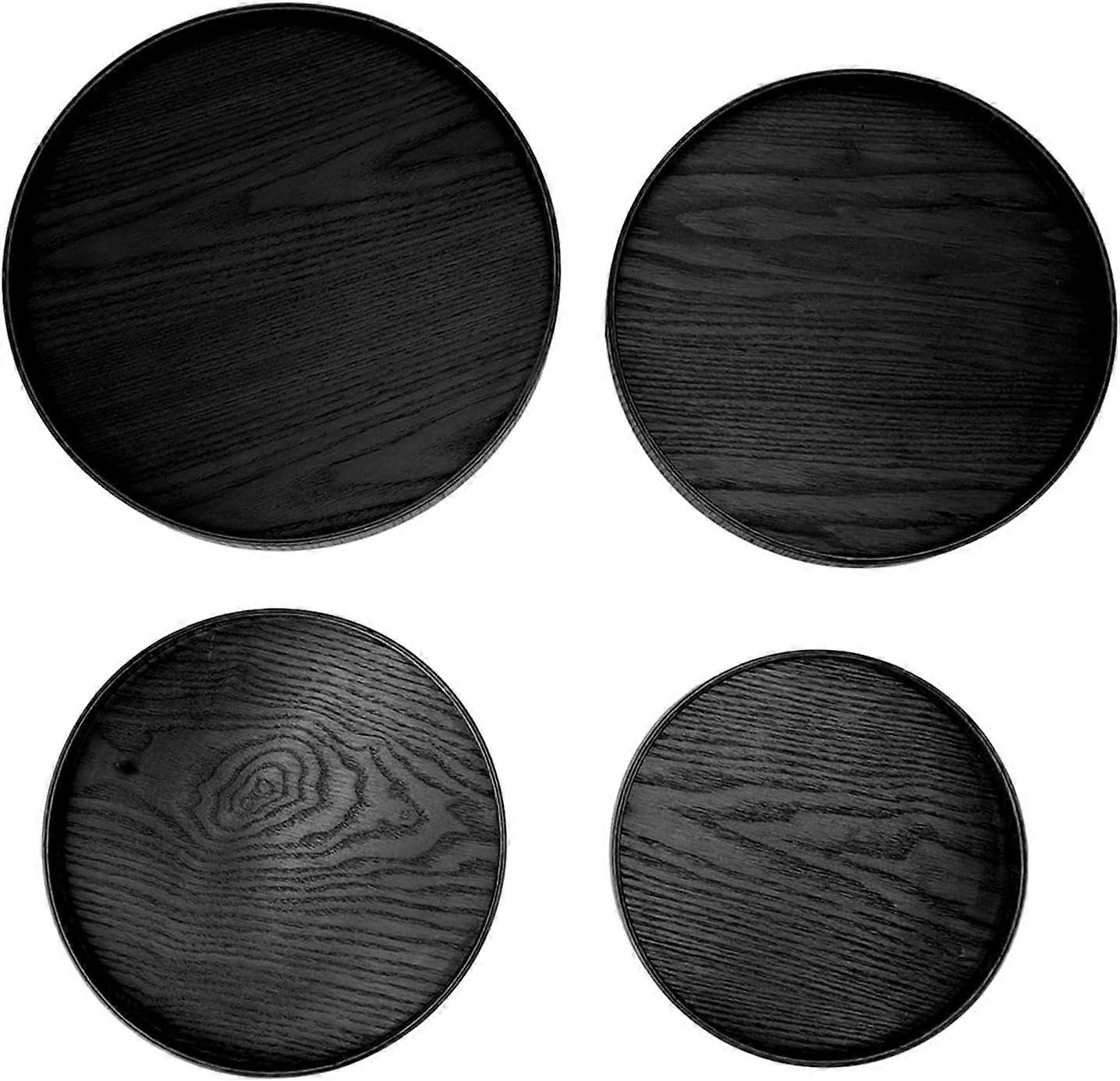 Wooden Tray Set of 4, Round Multi-Purpose Serving Trays for Fruit, Snacks, Tea, Desserts, Coffee Table Home Decor (Black)