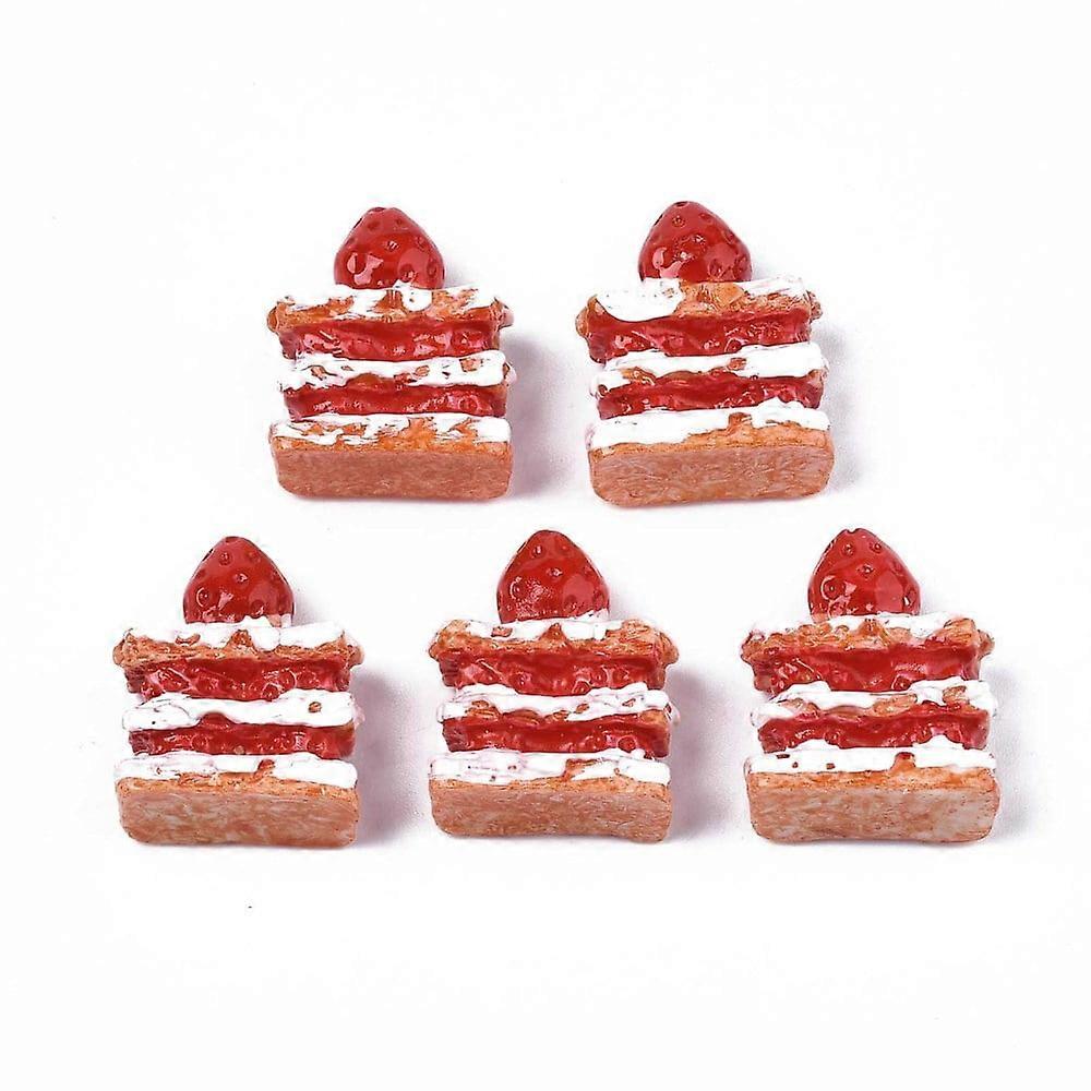 10pc Opaque Resin Decoden Cabochons Play Food Imitation Food Strawberry Millefeuille Red 24x20x10mm DIY