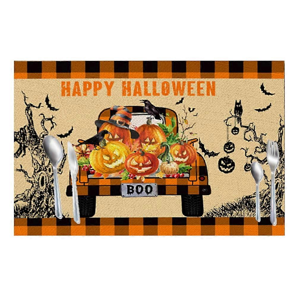 4 Pack Halloween Placemats Set, Witch Pumpkin Washable Table Mats, Trick or Treat Autumn Decor for Dining Home Kitchen - Compatible with Halloween