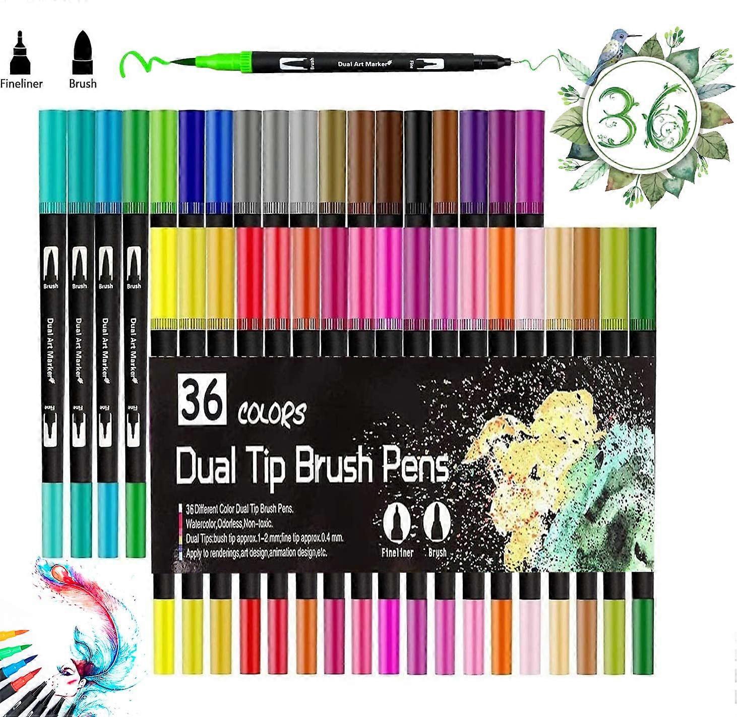 OBOSOE Brand 36 Pack Calligraphy Brush Marker Pens [Bullet Journal] Dual Tip Pastel Colored Japanese Pen Fine Point 0.4 Blending Markers for Beginners, Art Supplies Journaling, Colorful Pens, Marker for Adult Coloring Books, Colorful pens in 36 vibrant color, Dual Tip Japanese pens, Best Markers for adult coloring. ??【Dual Tip Brush Marker Pens】: Dual brush pens for shading and colouring, fine tip colouring pens with 0.4mm fine point tip for contours and details, brush tip with 1-2mm for shading and colouring, you can instantly switch between the thick and fine tip without having to change the other pens ??【Versatile Double Art Colouring Pens】: 36 bright colors coloured pens great for adult colouring book, doesn't bleed through the page, perfect for painting, sketching, shading, doodling, outlining, and detailing, dual brush pens are perfect for Bullet Journal, Note Sketch Books, Homework, Art Calligraphy and Illustrations ??【High Quality Artists Brush Pens】: This colouring pens for adults, fineliner pen drawing sets are made of strong pigments, fine tip colouring pens can fulfill different needs of the artists and make the drawings with vibrant effects, beginner / adult / kids / artists would be able to express their emotions through art to perfection with the watercolour brush pens ??【Wonderful Gift Set】: This fineliner pens coloured each cap has a corresponding color, It will help you to recognize color quickly and give you better coloring experience,dual tip brush pens are perfect for easter gifts for Kids, easter eggs crafts, Halloween, Thanksgiving card decorations, nice gifts for Black Friday, Cyber ​​Monday, Christmas, or any special holiday, good range of colours and perfect for both colour covering and also more detailed work having both thick and fine options ??【Don't hesitate to add to cart】: If you have any questions or suggestions about the Dual Tip Brush Marker Pens, please contact us and give us an opportunity to improve, we will respond to you with a satisfactory solution