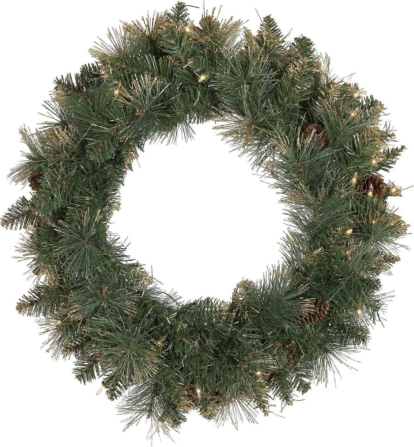 Pre-Lit Yorkshire Pine Artificial Christmas Wreath, 24-Inch, Clear Lights