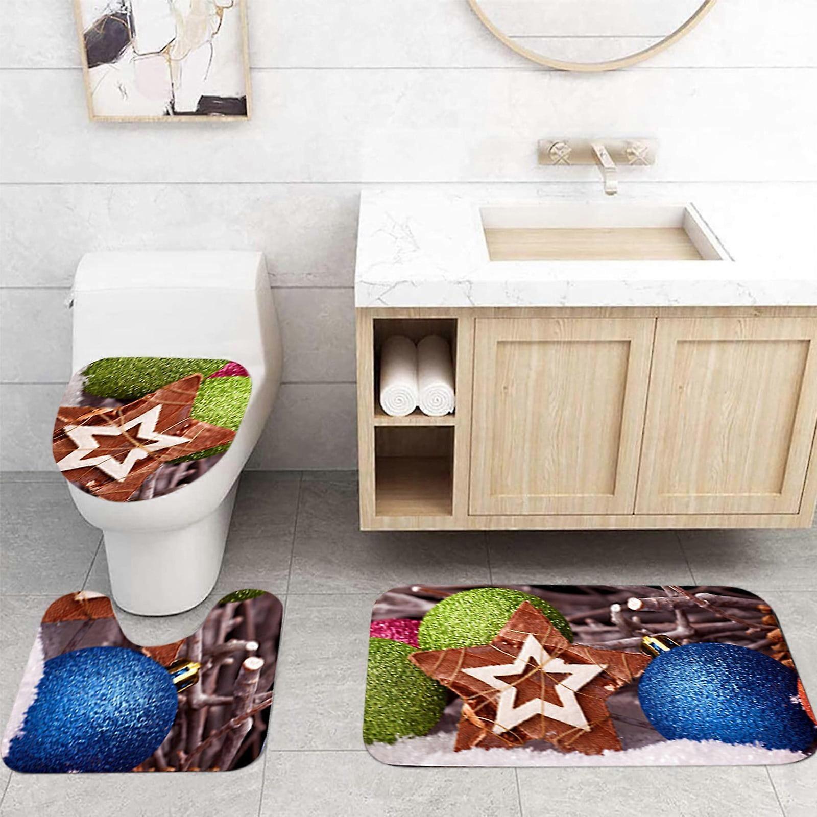Christmas Toilet Seat Cover & Rug Set, 3PCS Bathroom Cushion Set with Non-Slip Pad, Compatible with Standard Toilets
