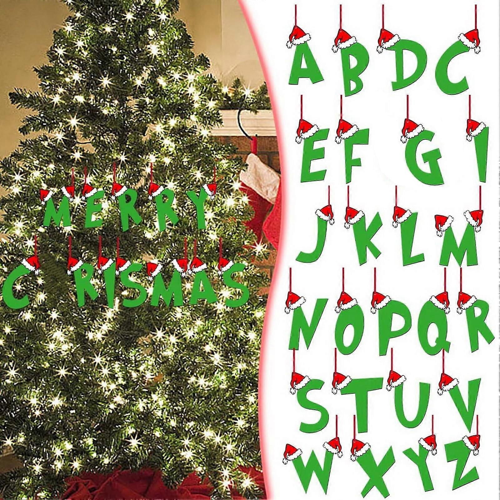 SUSUchens Christmas Green Letter Hanging Decor, Santa Hat Wooden Xmas Tree DIY Pendant, Compatible with Holiday Party Ornament Gift
