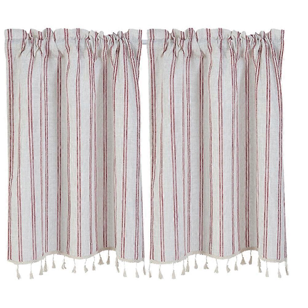 Rod Pocket Curtain Room Draperies Short Curtain Window Curtains Kitchen Tiers for Bedroom Living Room Kitchen Accessory Red 130x41cm