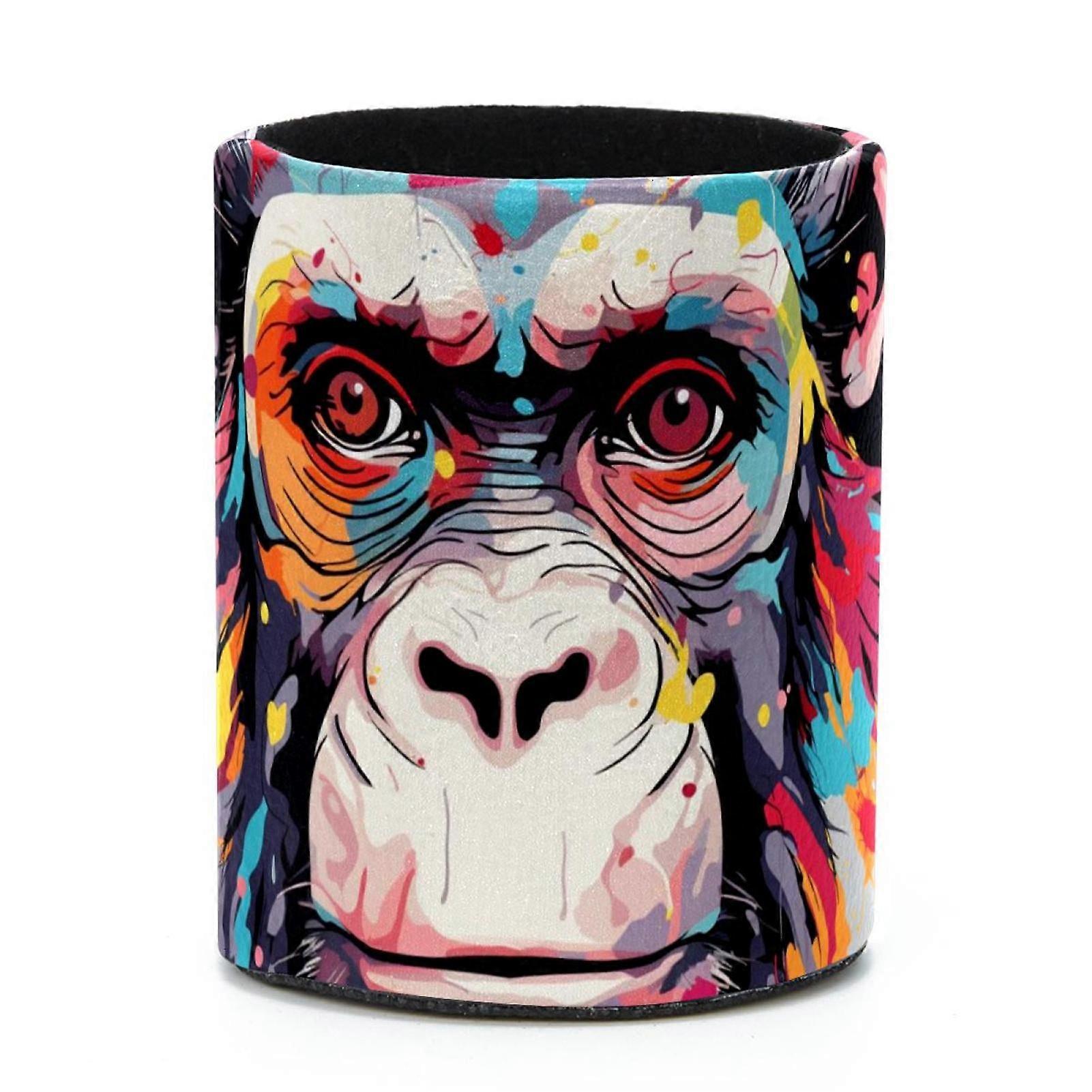 Enhance Your Workspace with this Pretty and Functional Cylindrical Pen Holder and Desktop Organizer, Colorful Monkey