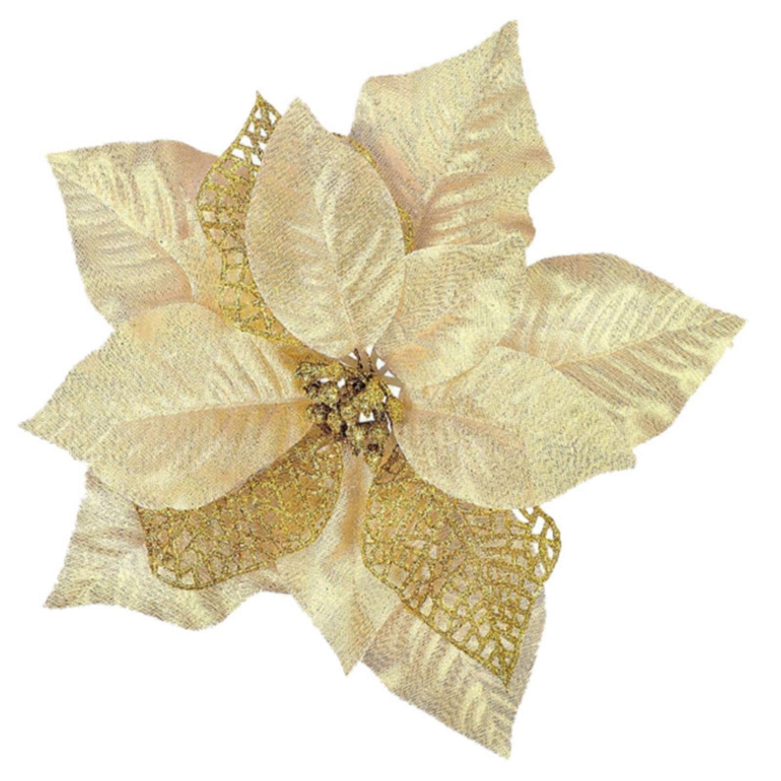 Giyblacko 2 PCS 7.87'' Gold Glitter Artificial Christmas Flowers with Clips, Compatible with DIY Xmas Tree & Wreath Decor