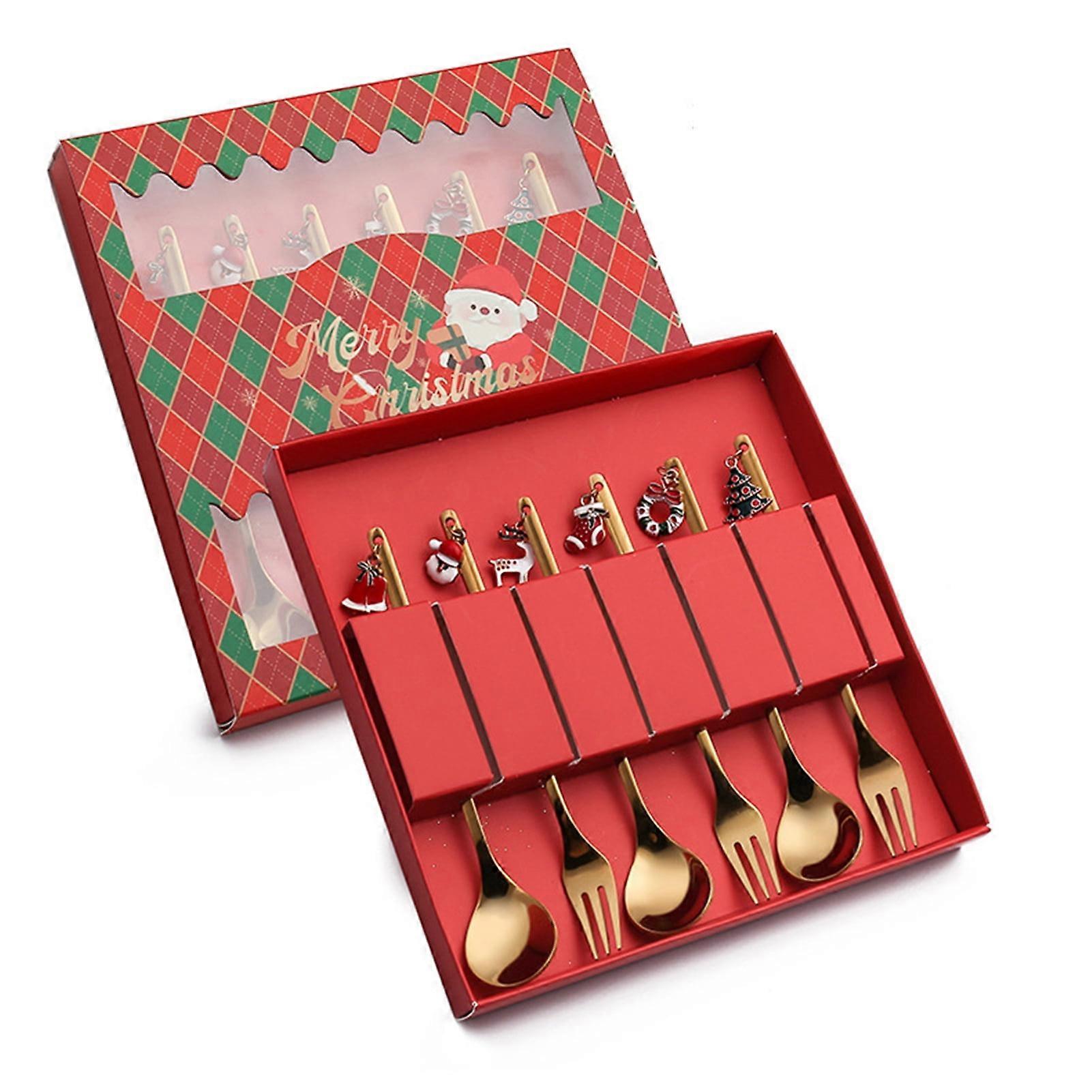 6Pcs Christmas Cutlery Set - Stainless Steel Tableware with Christmas Pendant - Festive Decoration for Home Dining