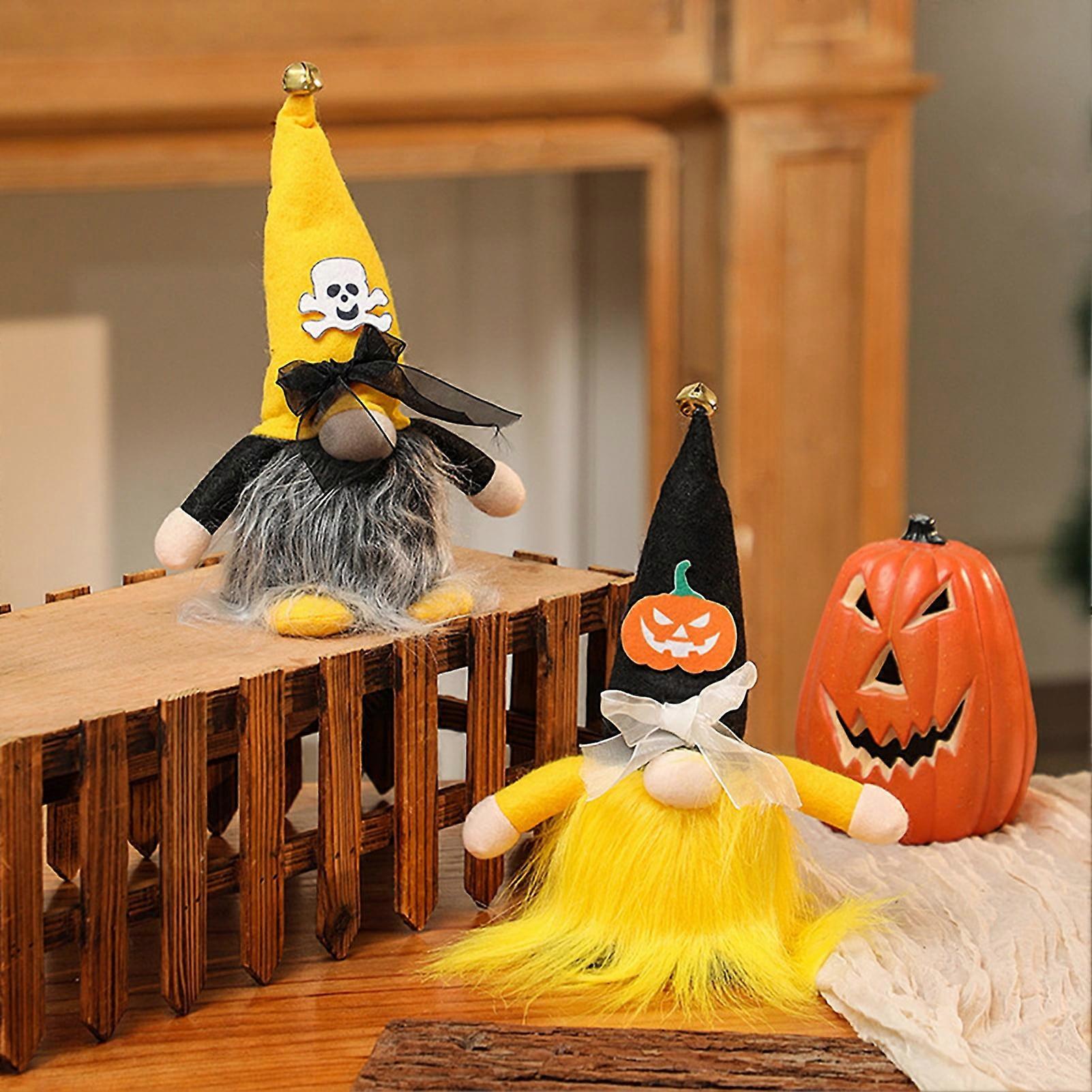 Halloween Gnome Decoration: Plush Skull Pumpkin Doll Ornament, Soft Light Home Indoor Decor for Table, Shelf, Kitchen, Bed, Cabinet