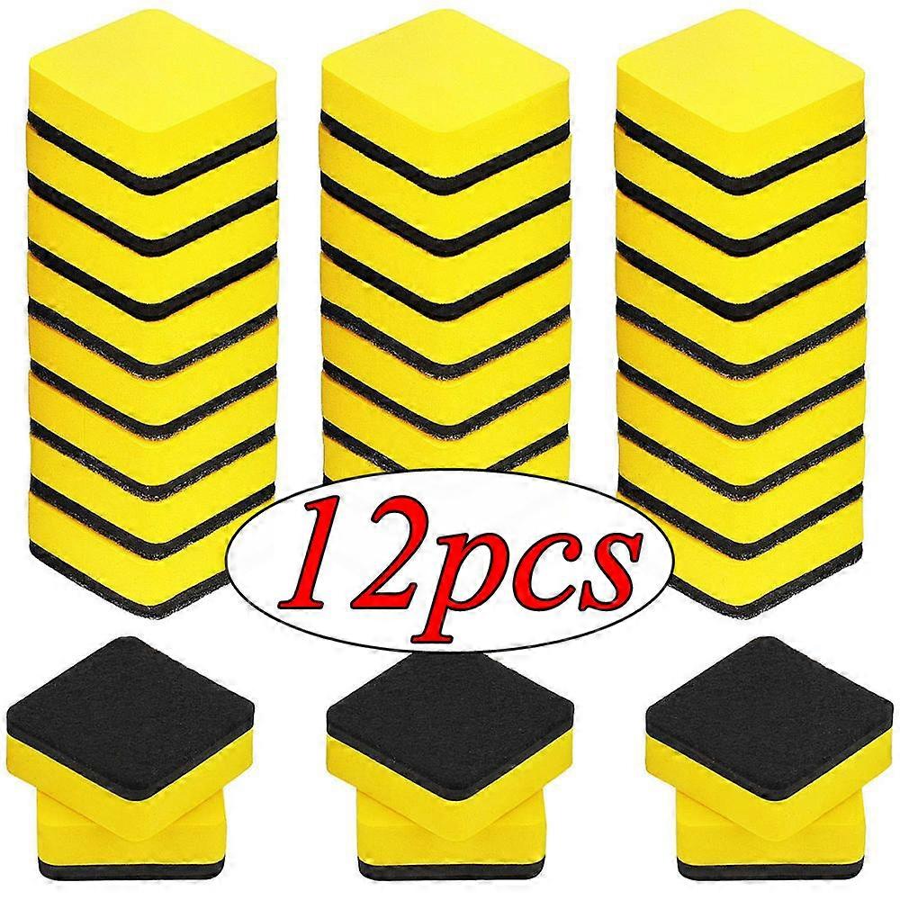 OBOSOE 12 Pack Magnetic Whiteboard Erasers, Colorful Small Dry Erase Board Cleaner Bulk for Classroom, Office 1.9 x 1.9 x 0.7", Yellow