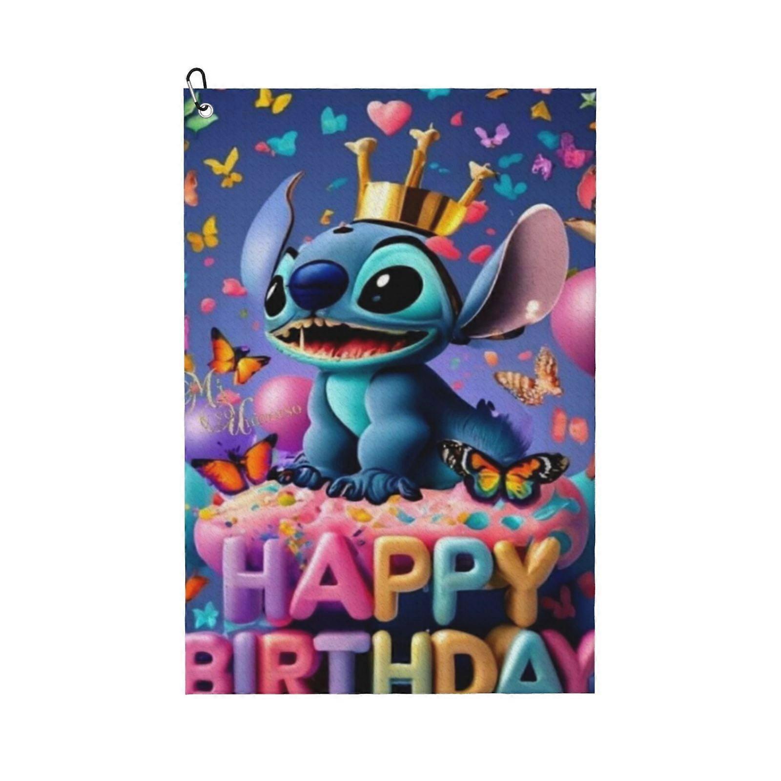 Happy Birthday Stitch Golf Towel For Men, Microfiber Waffle Golf Towel Golf Accessories, Christmas, Birthday Gift