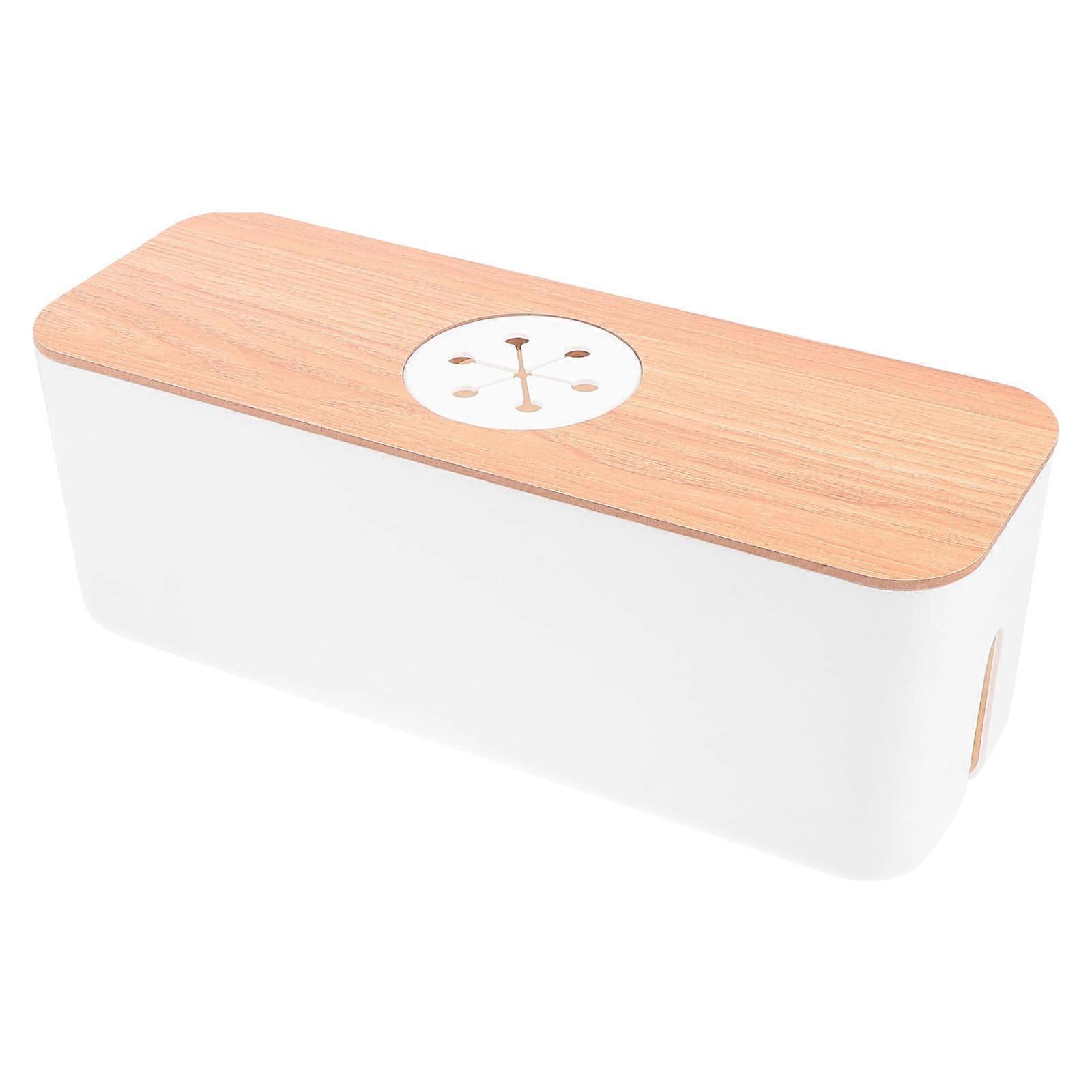 Guangmc White Cable Management Box with Wooden Cover - Round Holes.