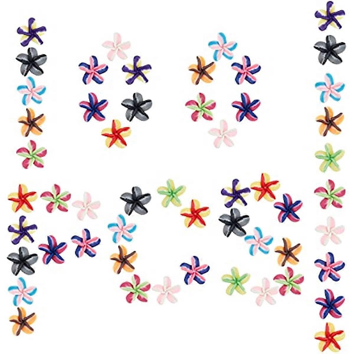 100Pcs Polymer Clay Flower Beads 3D Lily Floral Spacer Charm Loose Beads Slime Hole Drilled with Elastic Thread