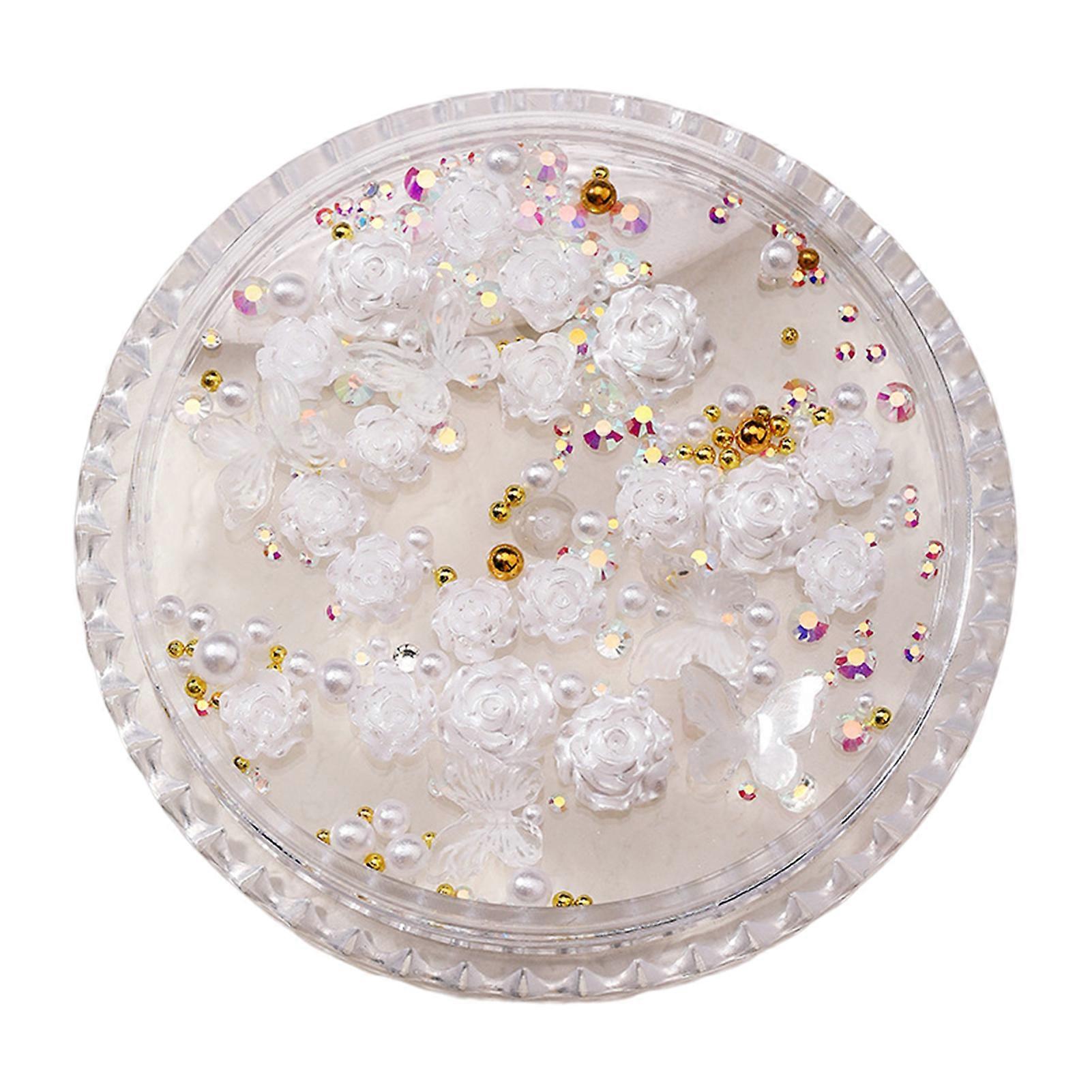 Hesroicy 1 Box Nail Accessories Non-falling Shining Sparkling DIY Resin 3D Camellias Faux Pearl Nail Art Manicure Craft Ornament for Beauty