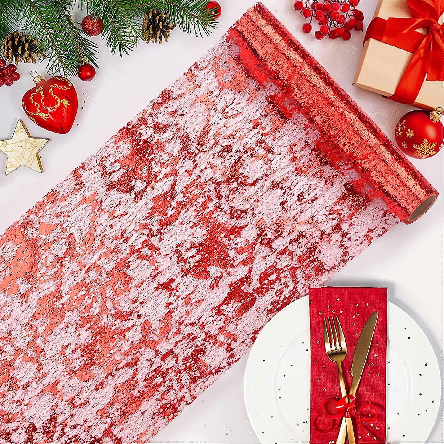 Sequin Glitter Metallic Foil Thin Mesh Roll Table Runners, Compatible with Party Wedding Birthday Holiday Decorations