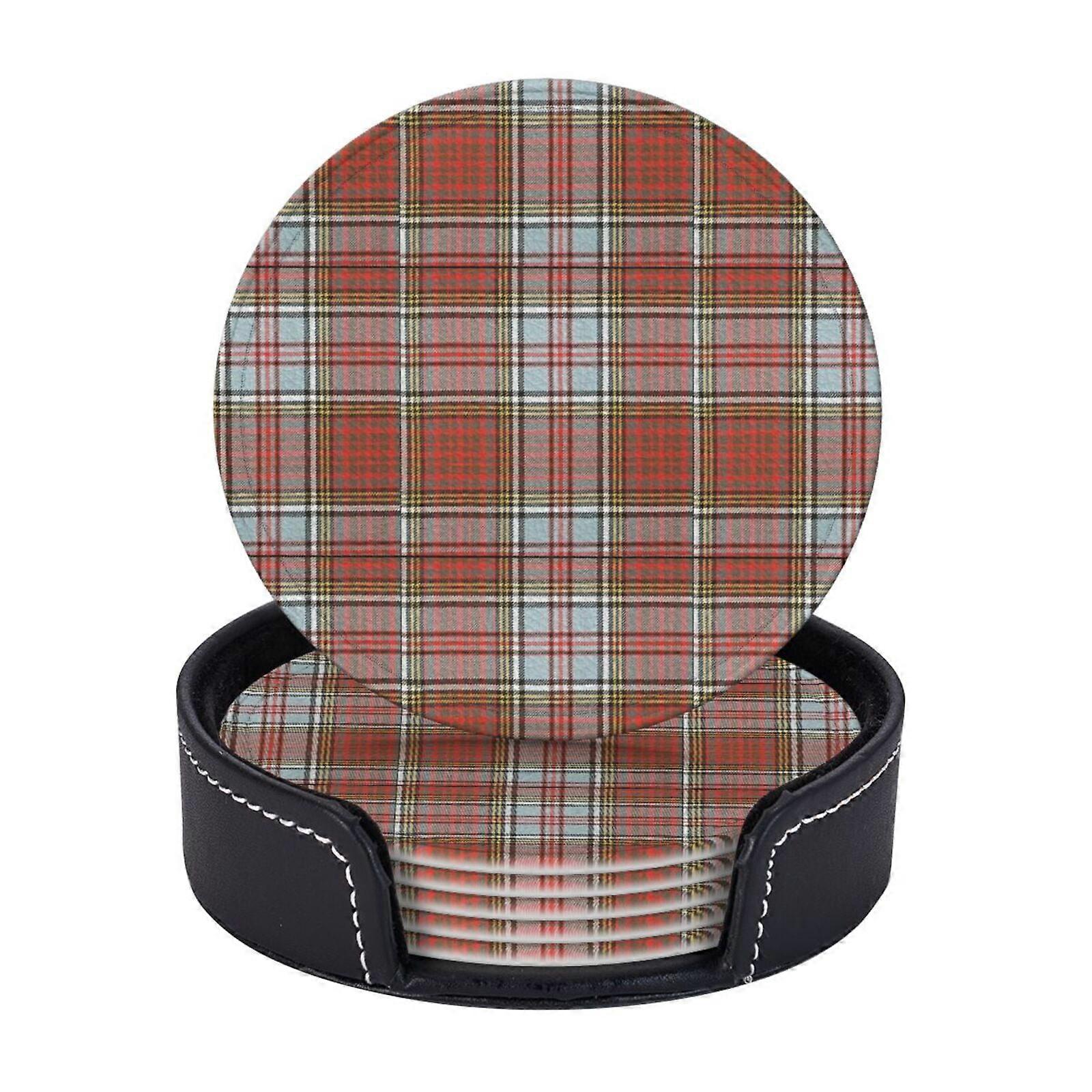 6 Pcs Leather Coasters,Clan Anderson Weathered Tartan Coasters For Drinks,Cup Mat Pad,Housewarming Gift,Ideal For Home Decor