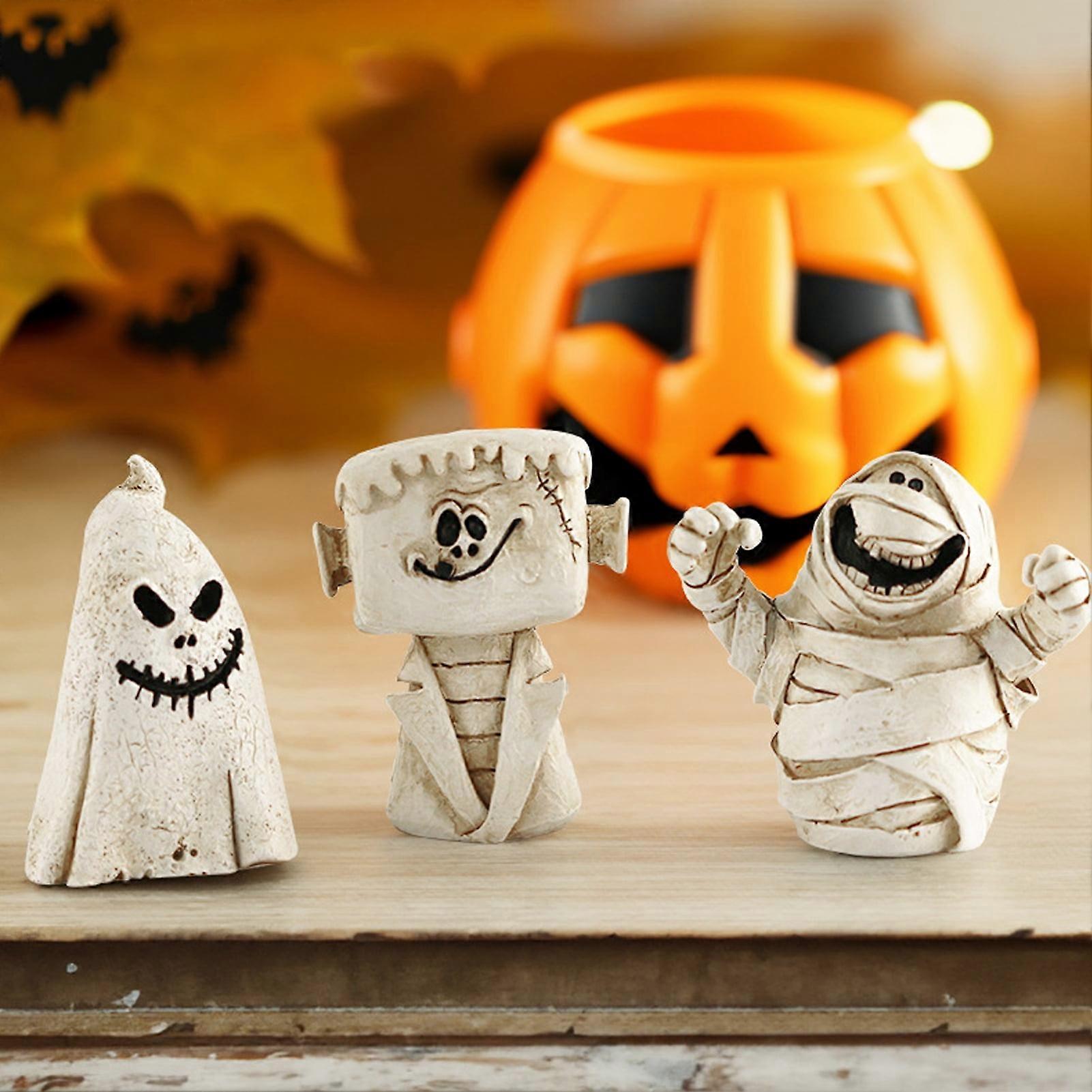 SUSUchens Spooky Halloween Resin Decor Ghost Mummy Clockwork Girl Candle Pumpkin Realistic Home Halloween Ornament Style E