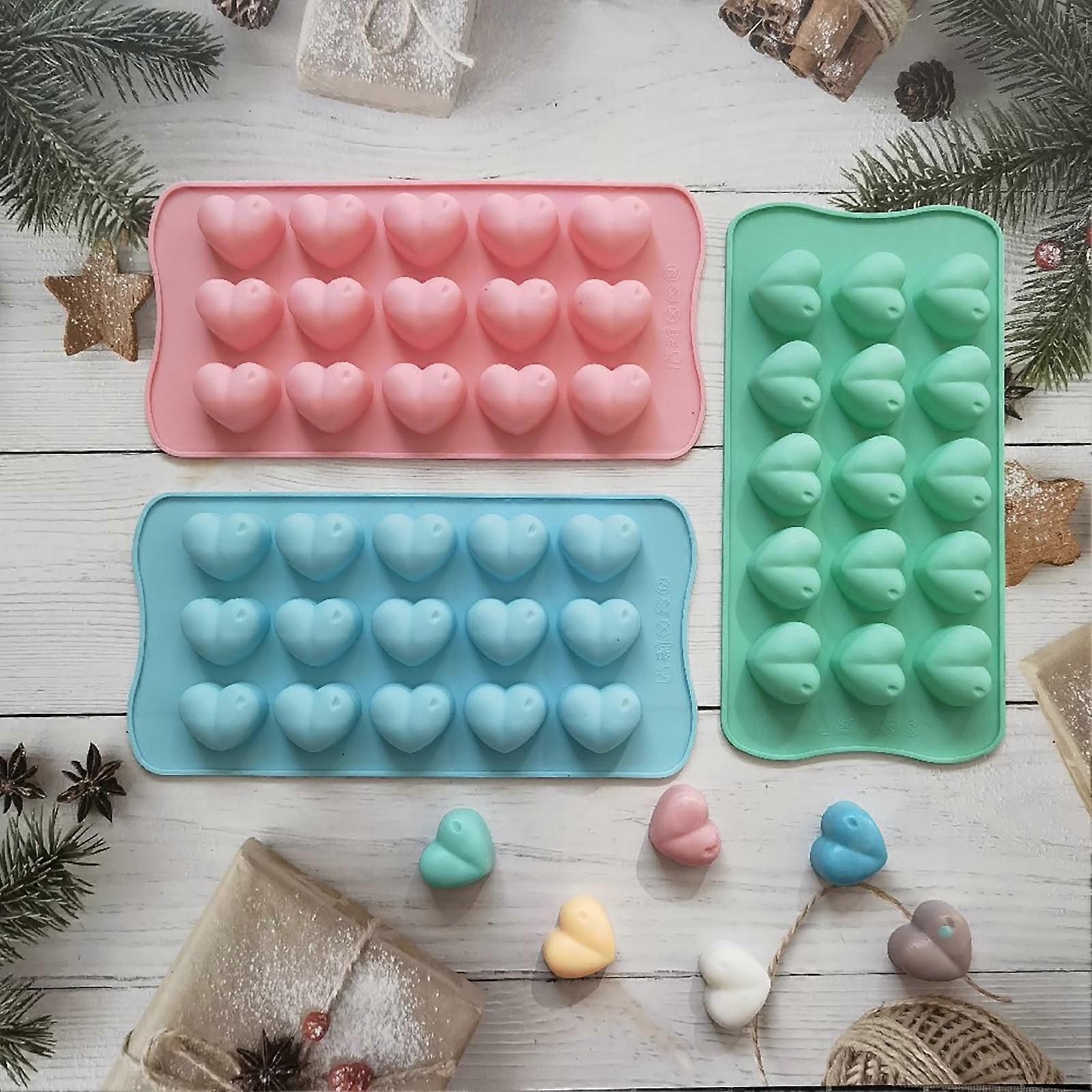 Hariumiu Chocolate Mold 15 Grids 3D Heart-shaped Candy Mold Non-stick Silicone Baking Cake Mold for Home Kitchen