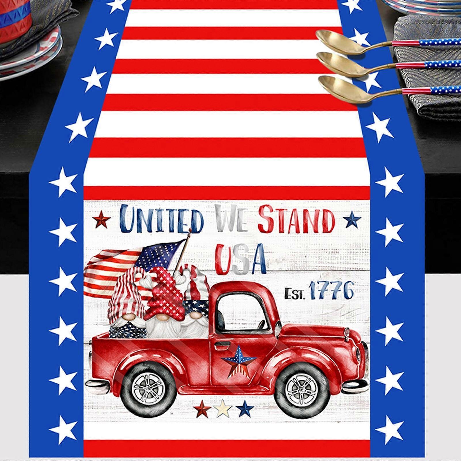 Giyblacko 4th of July Independence Day Table Runner, Patriotic Stripes Wired Edge Ribbon, Custom Satin Flag for Holiday Craft Decoration