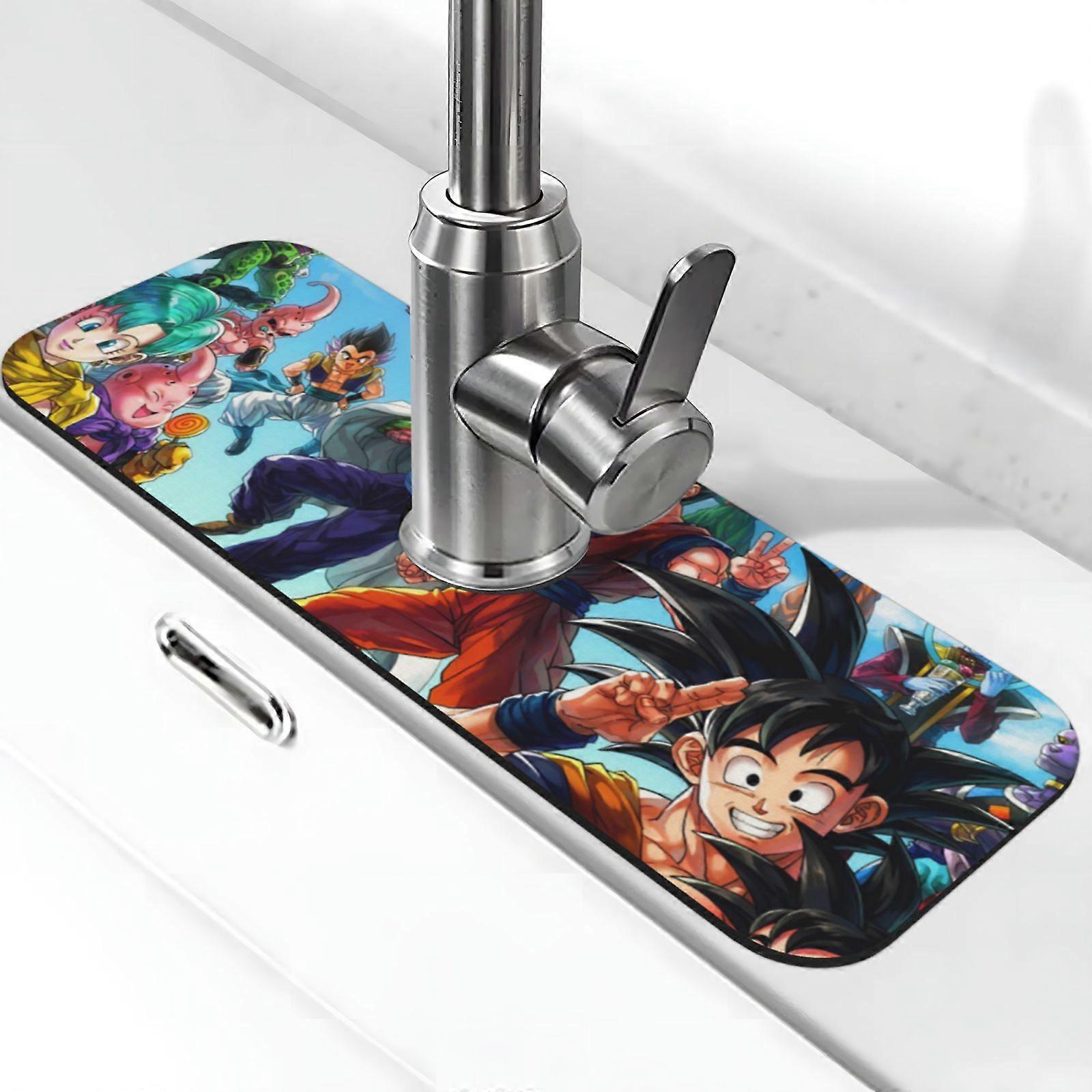 Sink Faucet Absorbing Mat, compatible with Anime Dragon Ball Z Drying Mat 38*14cm Splash Guard for Kitchen Bathroom - Style 2