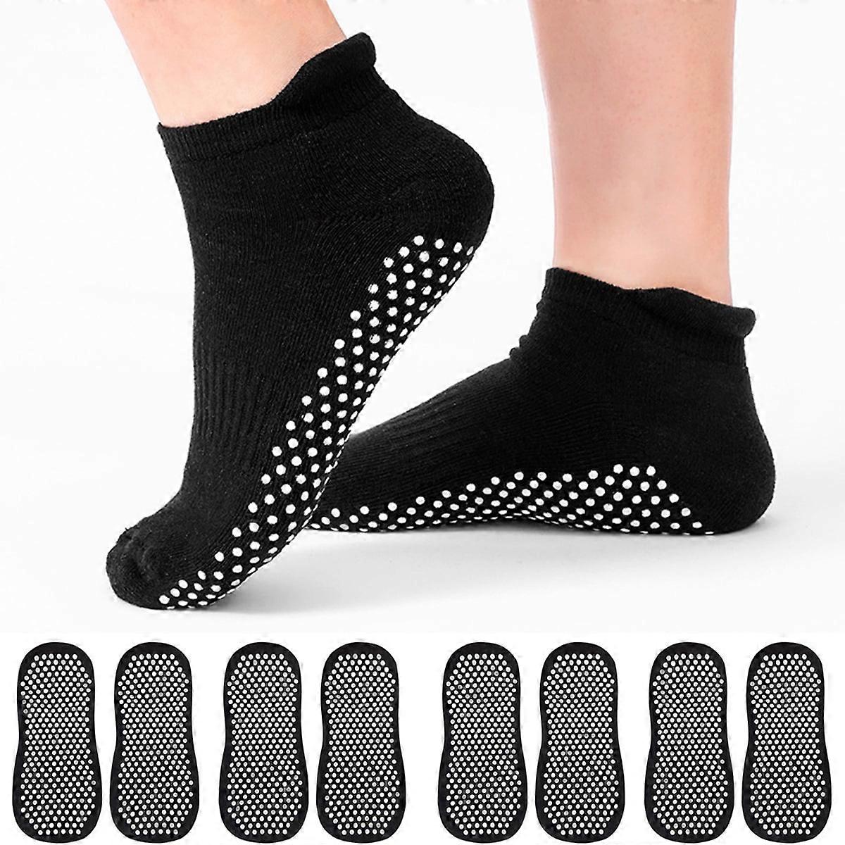 4 Pairs Non Slip Grip Socks for Pilates Yoga Barre Ballet Dance, Anti Skid Grip Socks for Women (5-8,Black)