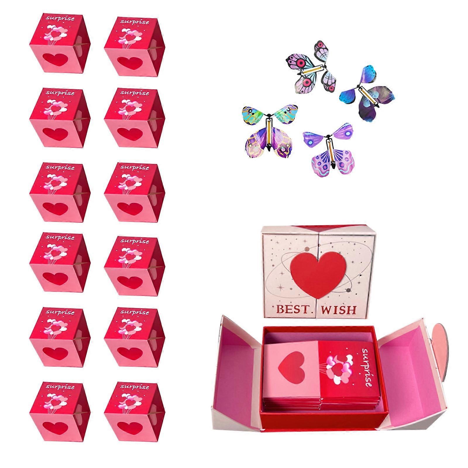 Double Door Surprise Gift Box with Butterflies Pink Envelope, Compatible with Christmas & Birthday - Pop-Up Folding Bouncing Box (12-Pack)