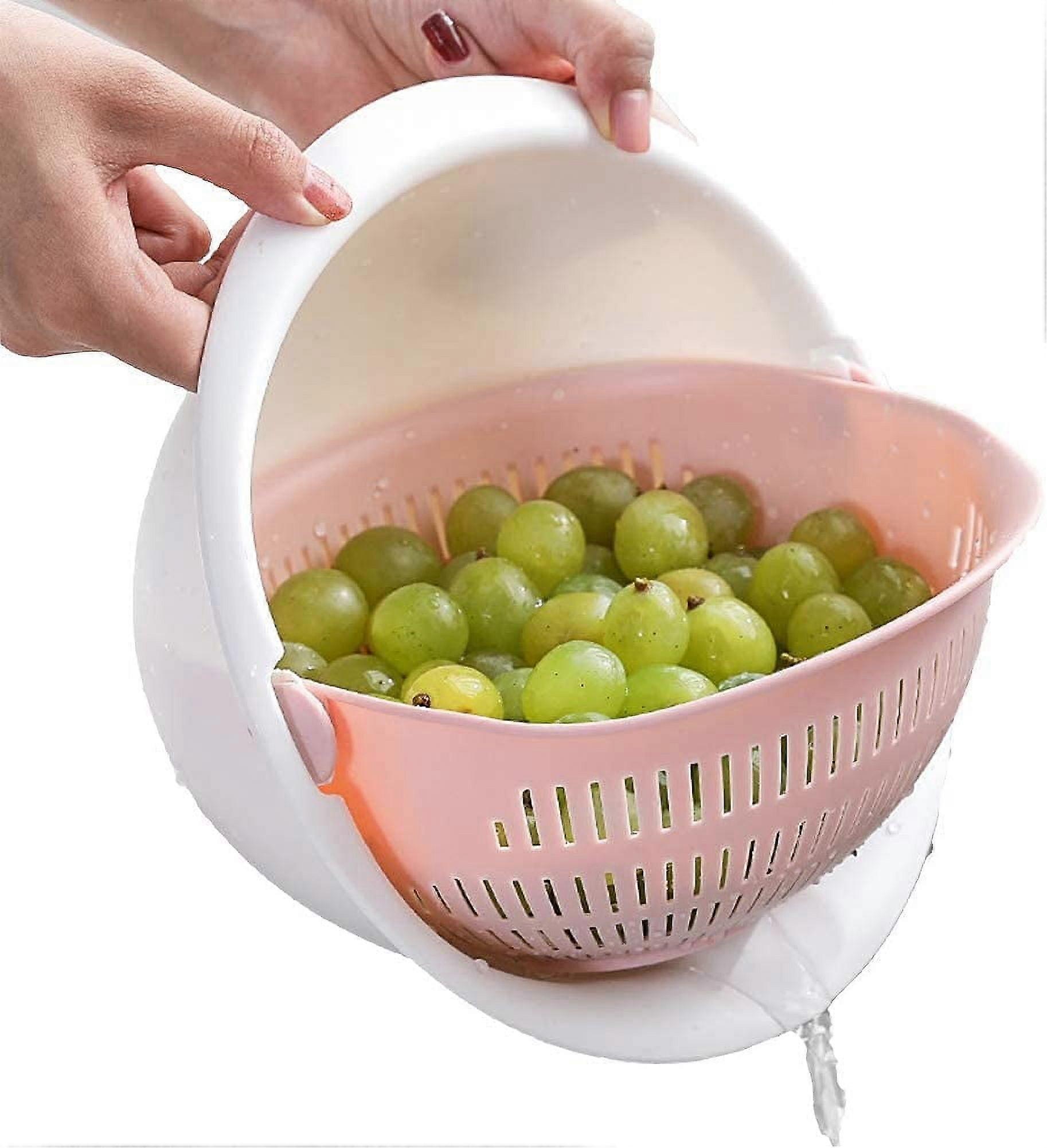 Double Layer Swivel Drainer 2 in 1 Bowl Strainer Combo - Kitchen Colander Fruit Wash Strainer for Cleaning Veggies, Noodles (Pink)