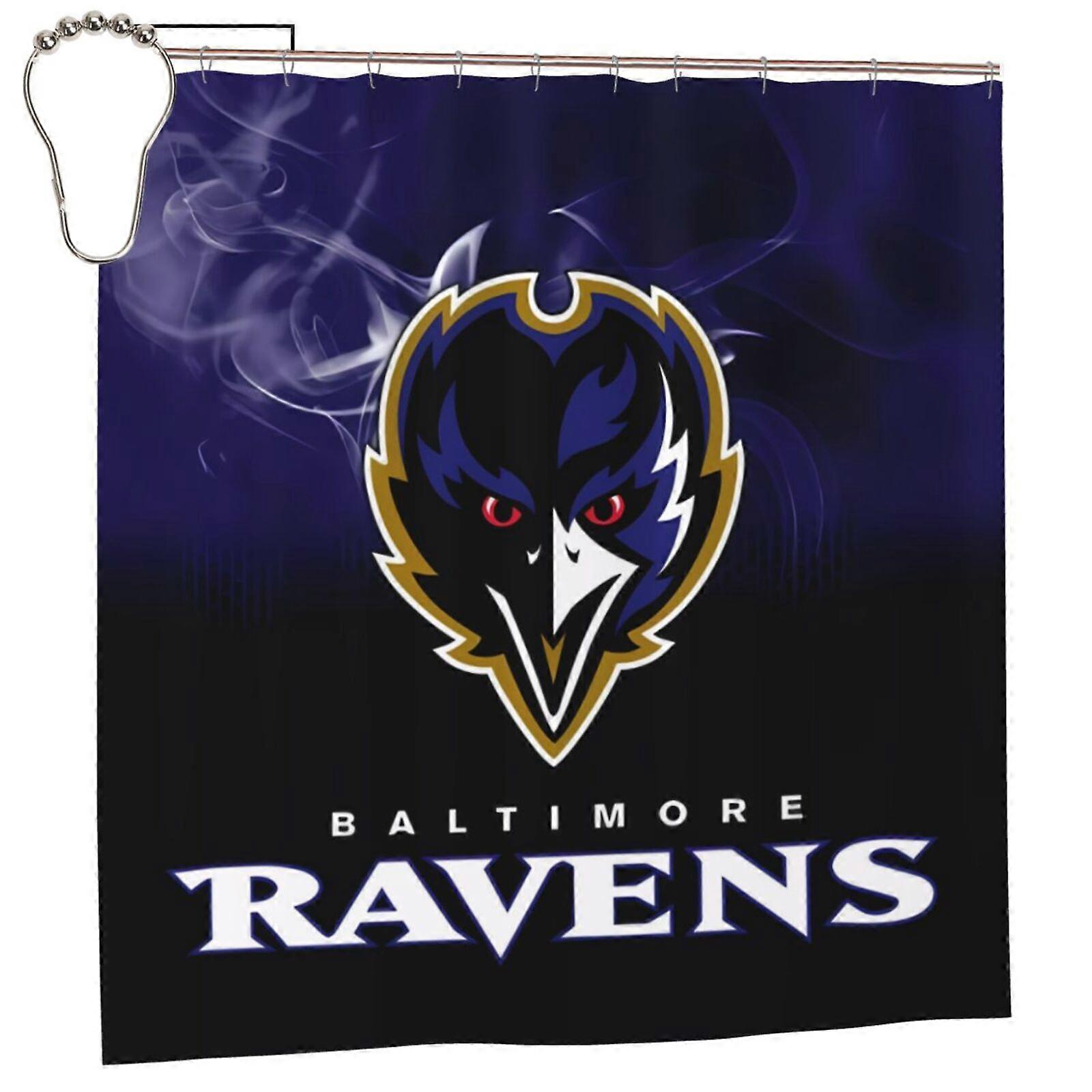 Ravens Waterproof Quick-Drying Shower Curtain 60x72in with Hooks, American Football Decor, Bathroom Iron Set