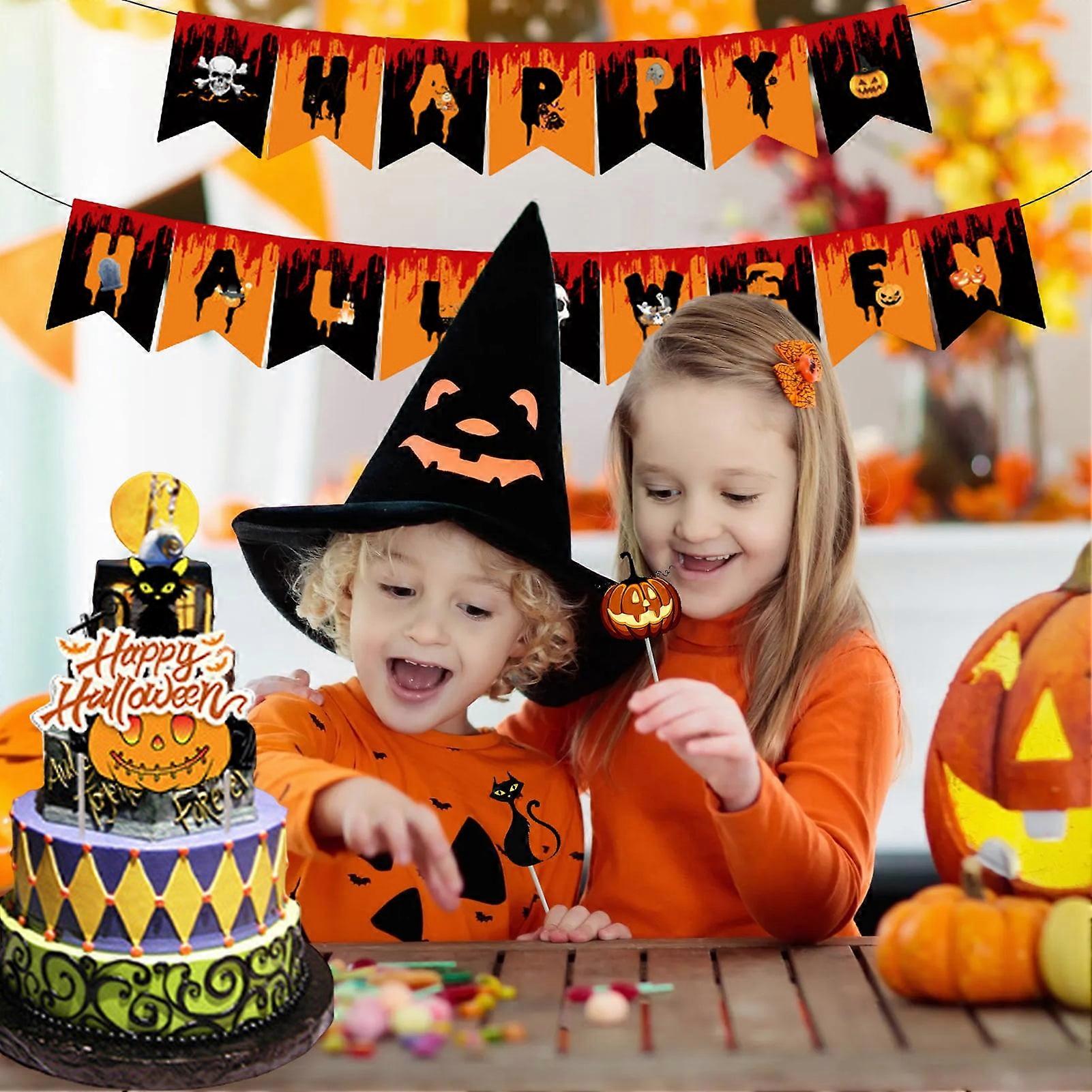 SUSUchens Halloween Cupcake Toppers Cat Pumpkin Spider Cupcake Picks Ballons Set Halloween Toothpick Banner for Party Decor Supplies Style B
