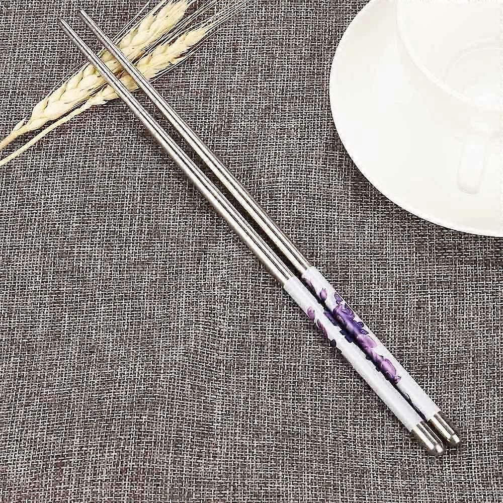 XiLanHUA Clearance 1Pair Length White Flower Pattern Stainless Steel Chopsticks Pair New