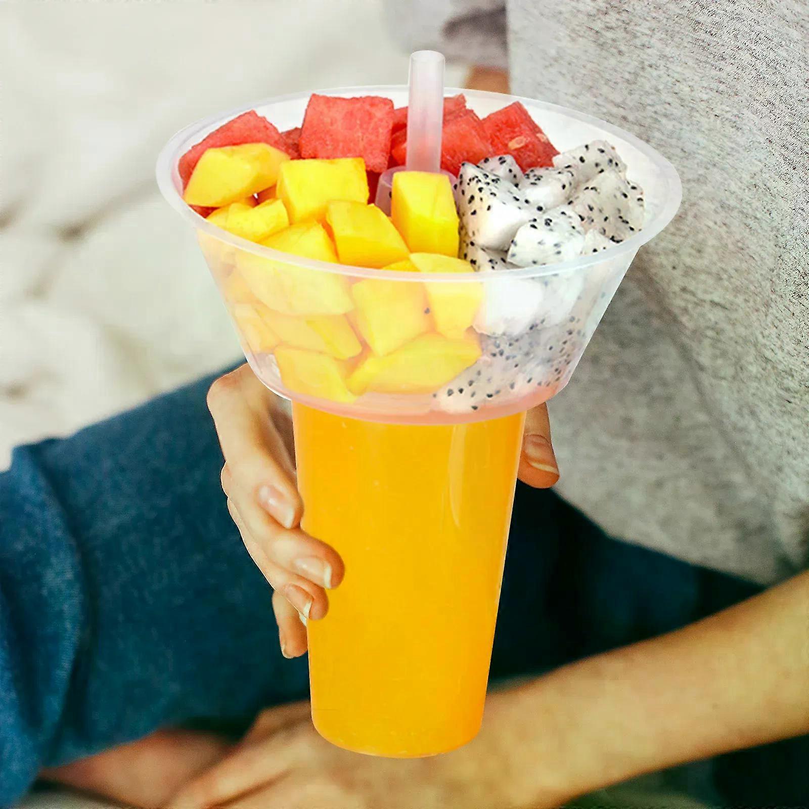 10pcs Drink Cup Top Bowls Popcorn Tray Beverage Cup Holder Bowl Disposable French Fries Drink And Snack Fruit Combination Cup