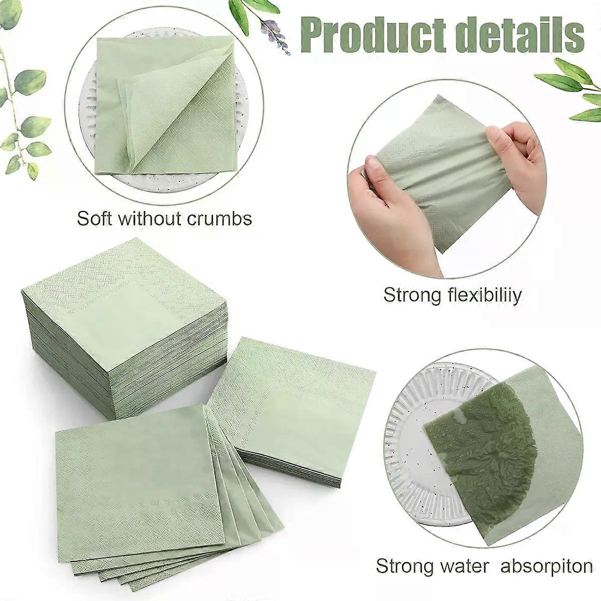 20Pcs Sage Green Paper Cocktail Napkins Disposable Wedding Soft For Birthday Dinner Party Bridal Shower Home Kitchen Portable