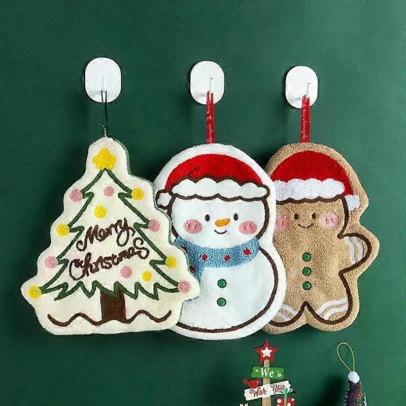 Coral velvet Christmas Hand towel for Kitchen Bathroom Handkerchief Cute Cleaning Towels with Hanging Rope Xmas Decor