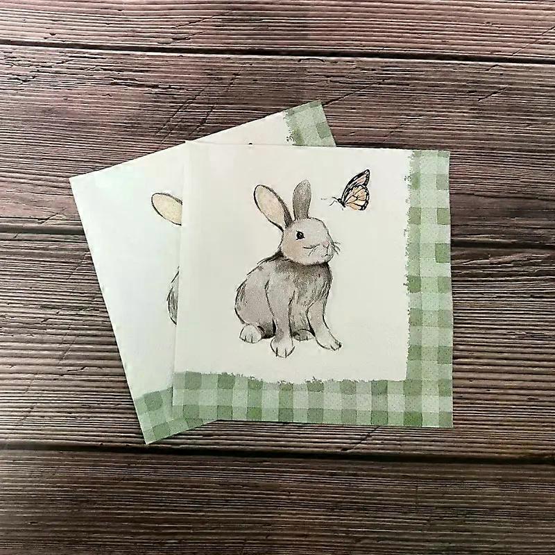 20pcs/Pac 3-Ply 25*25cm Easter Bunny Printed Party Napkins Green Plaid Handmade Butterfly Bone Bart Paper Placemats