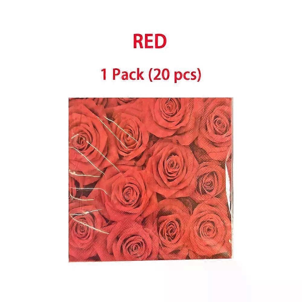 20Pcs/pack Lover Heart Rose Printed Paper Disposable Wedding Handkerchief Tableware Napkin Tissues Party Decoration