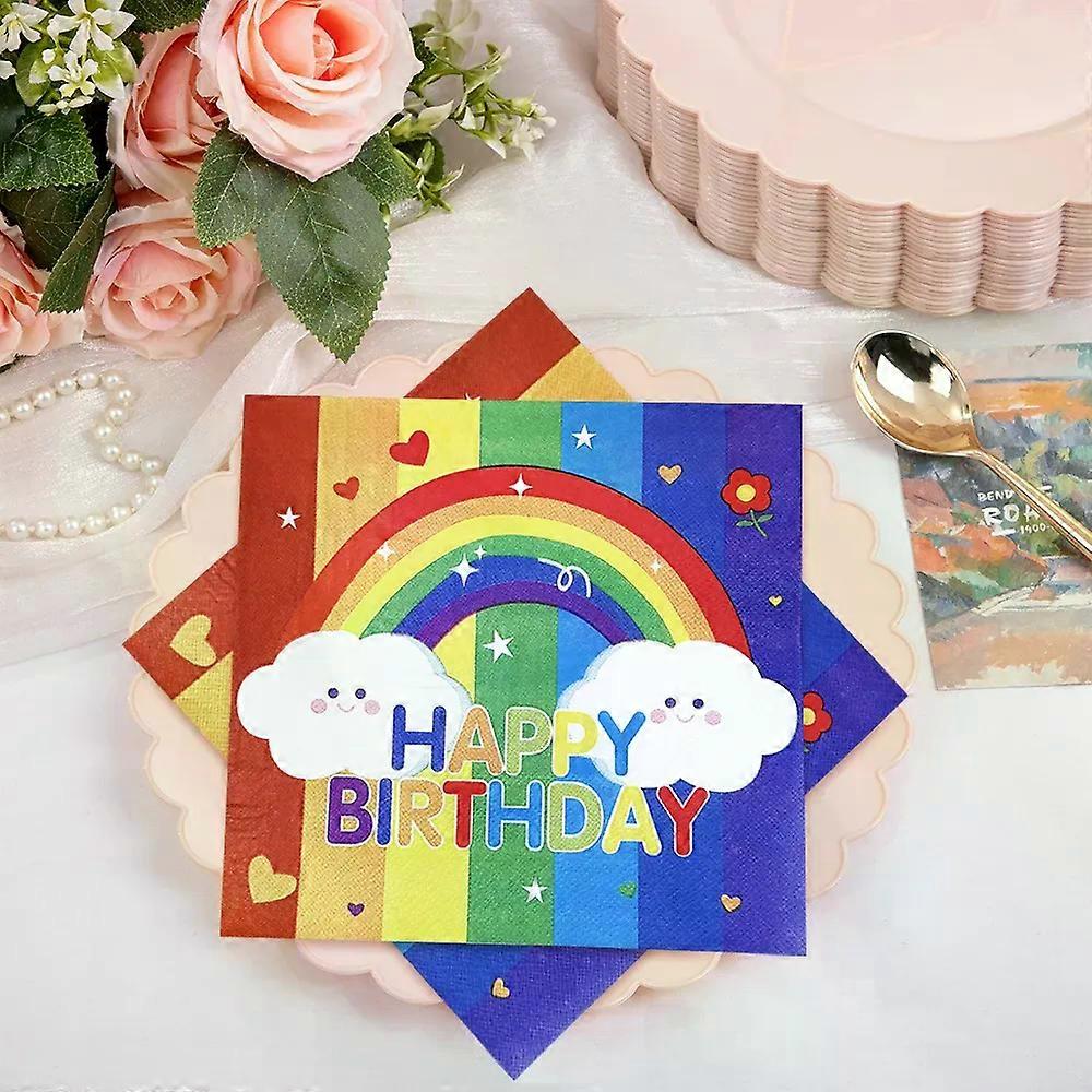 20Pcs/lot Birthday Party Napkins Dinner Table Napkins Paper Rainbows Safe Fragrant Free Soft Mouth Wiping Tissue Napkin Paper
