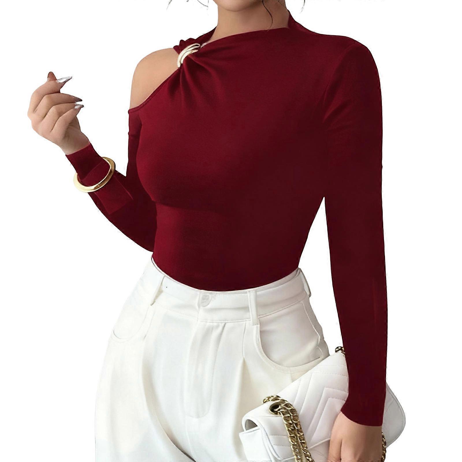 Women's Asymmetrical Cold Shoulder Shirts Long Sleeve Tops Fall Casual Blouse WE XL