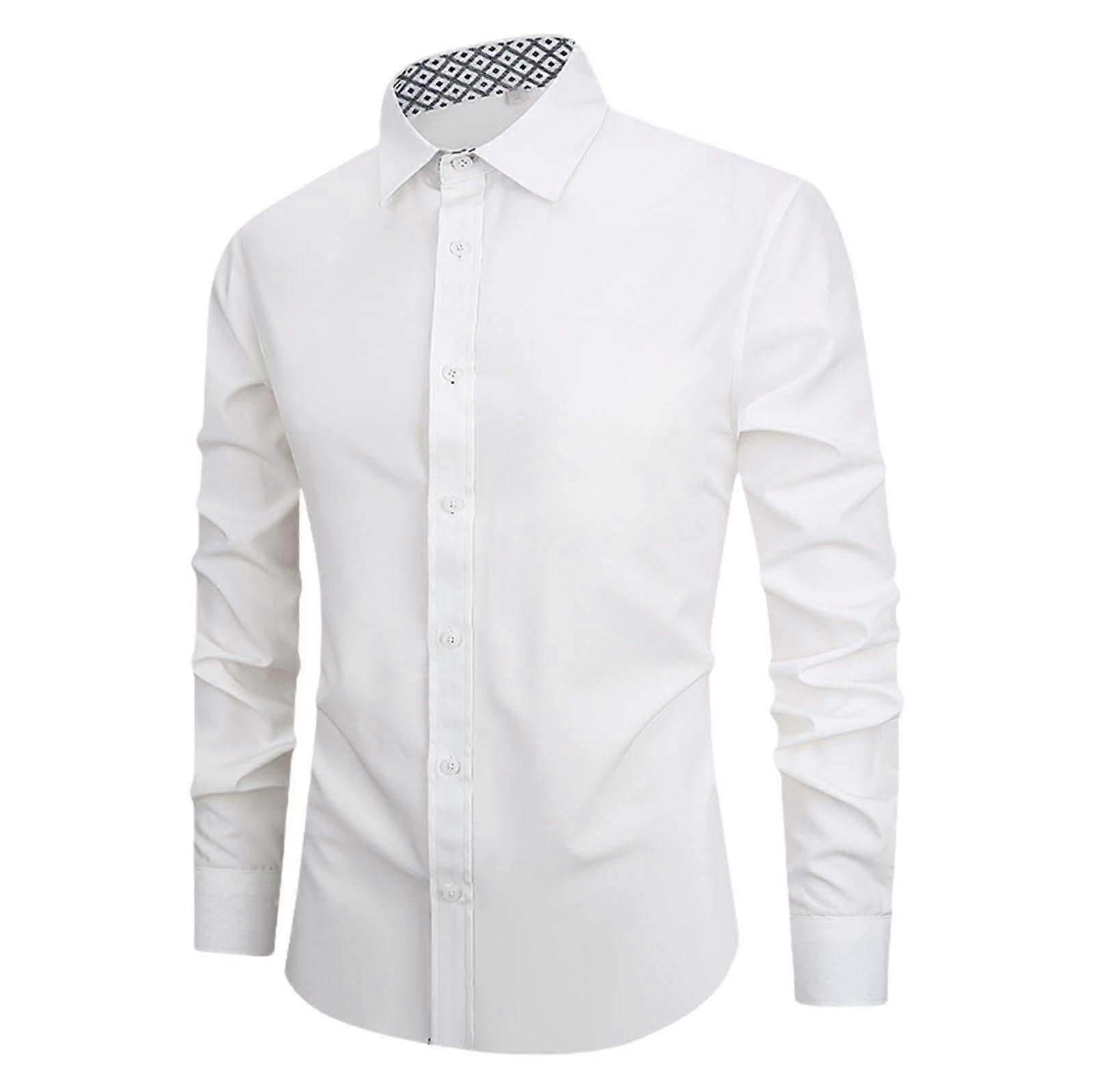 Mens Dress Shirts Regular Fit Long Sleeve Stretch Business Dress Shirts for Men White XL