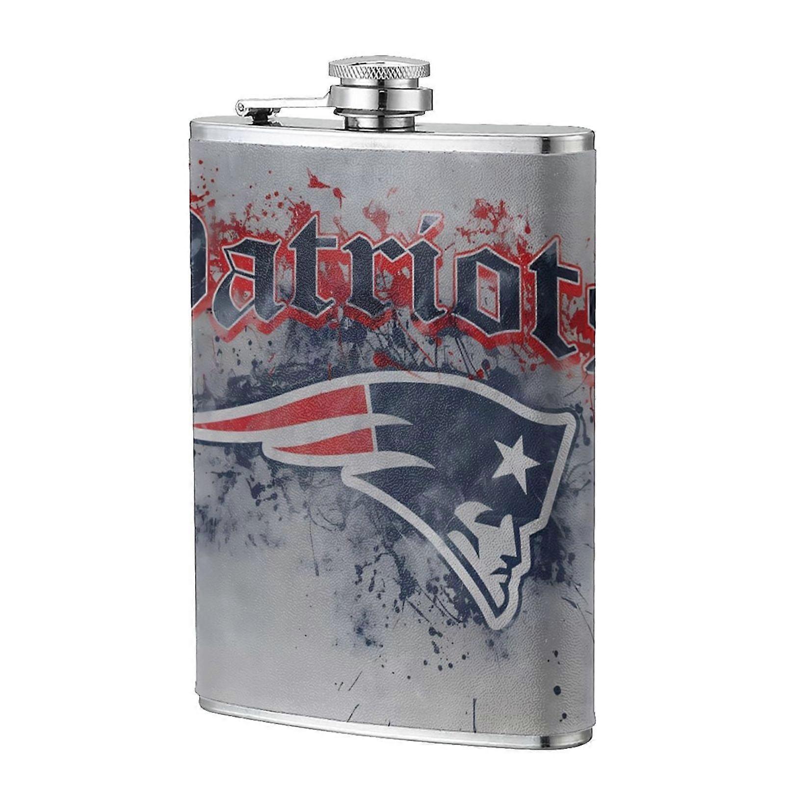 Patriots Flagon Hip Flask 8oz, Food-Grade Stainless Steel & Leather, Portable for Men, Compatible with Outdoor Sports, Camping