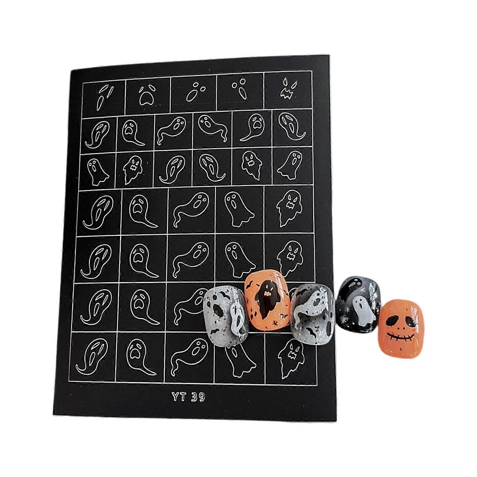 Reusable Halloween Nail Art Stickers Spooky Skeleton Nail Decals For Costume Party Easy Application Long Wearing Design Multicolor