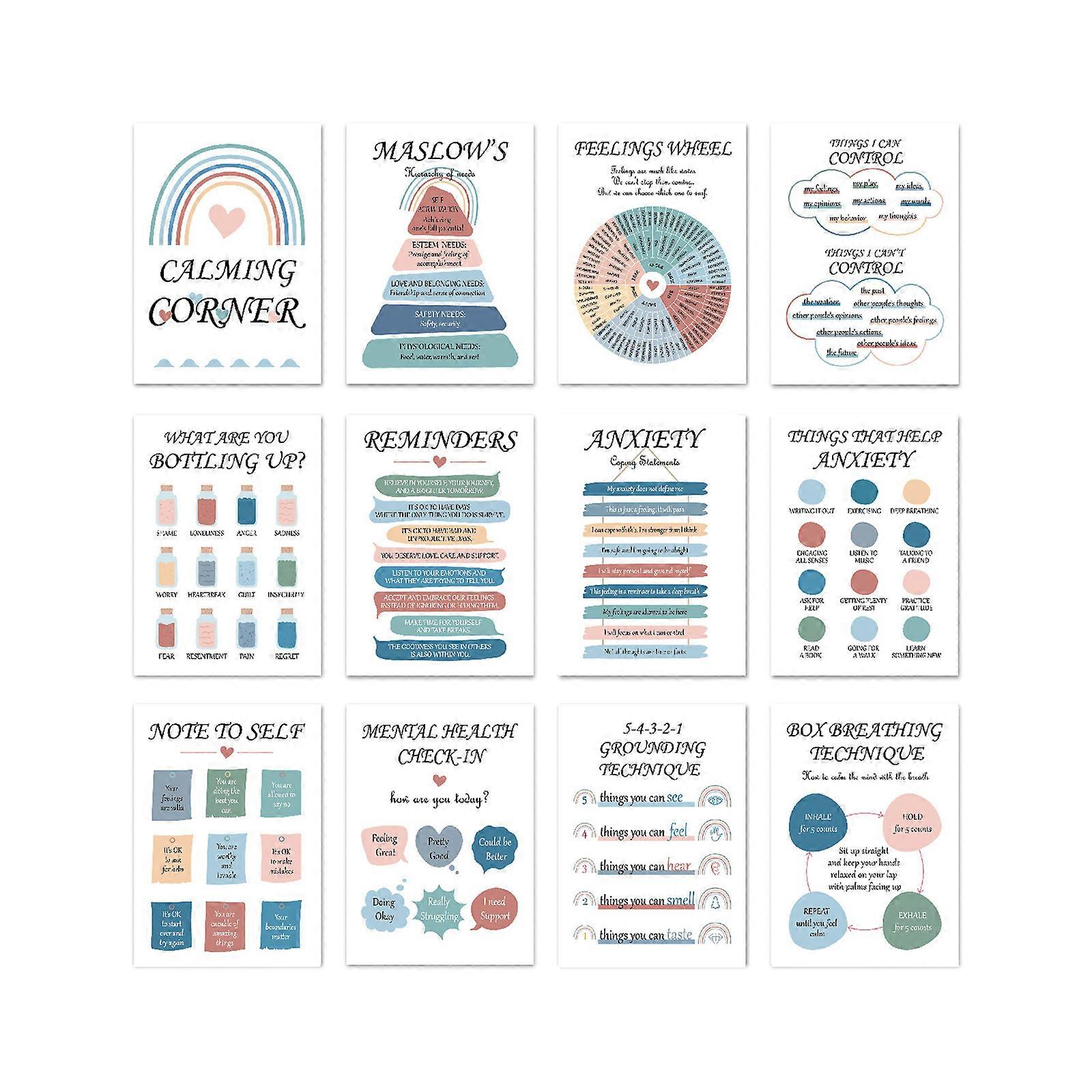 12 Sheets Classroom Calming Corner Posters Mental Health Counseling Posters 10x14Inch For Office School Classroom Multicolor