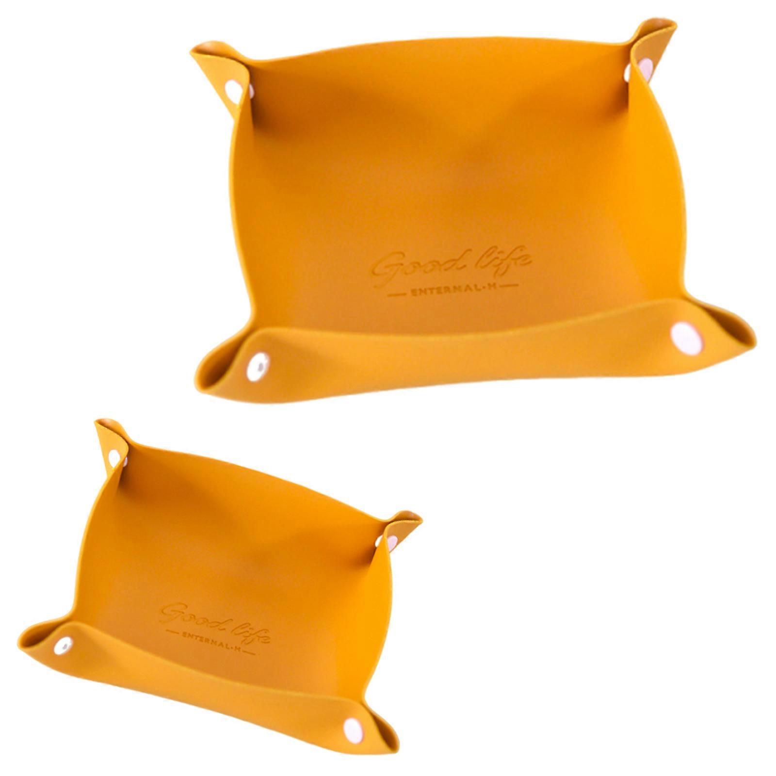 Premium PU Leather Desk Set Storage Tray for Pens Cosmetics Accessories Home Office Organization Yellow