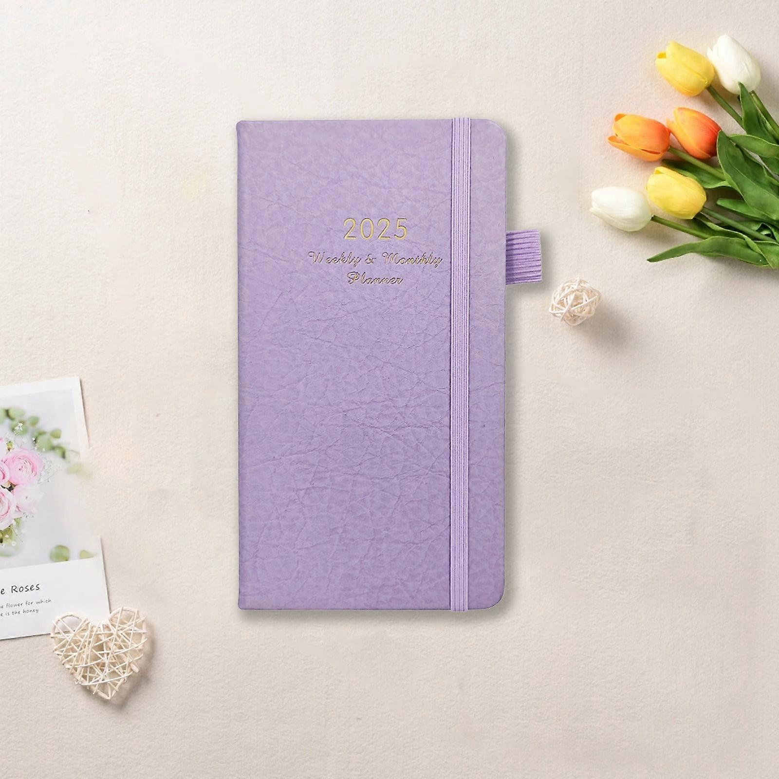 Pocket Calendar 2024-2025 3.9''x7.1'' Hardcover Planner with Pen Holder, Daily/Weekly/Monthly Agenda - Violet, Ivory Paper